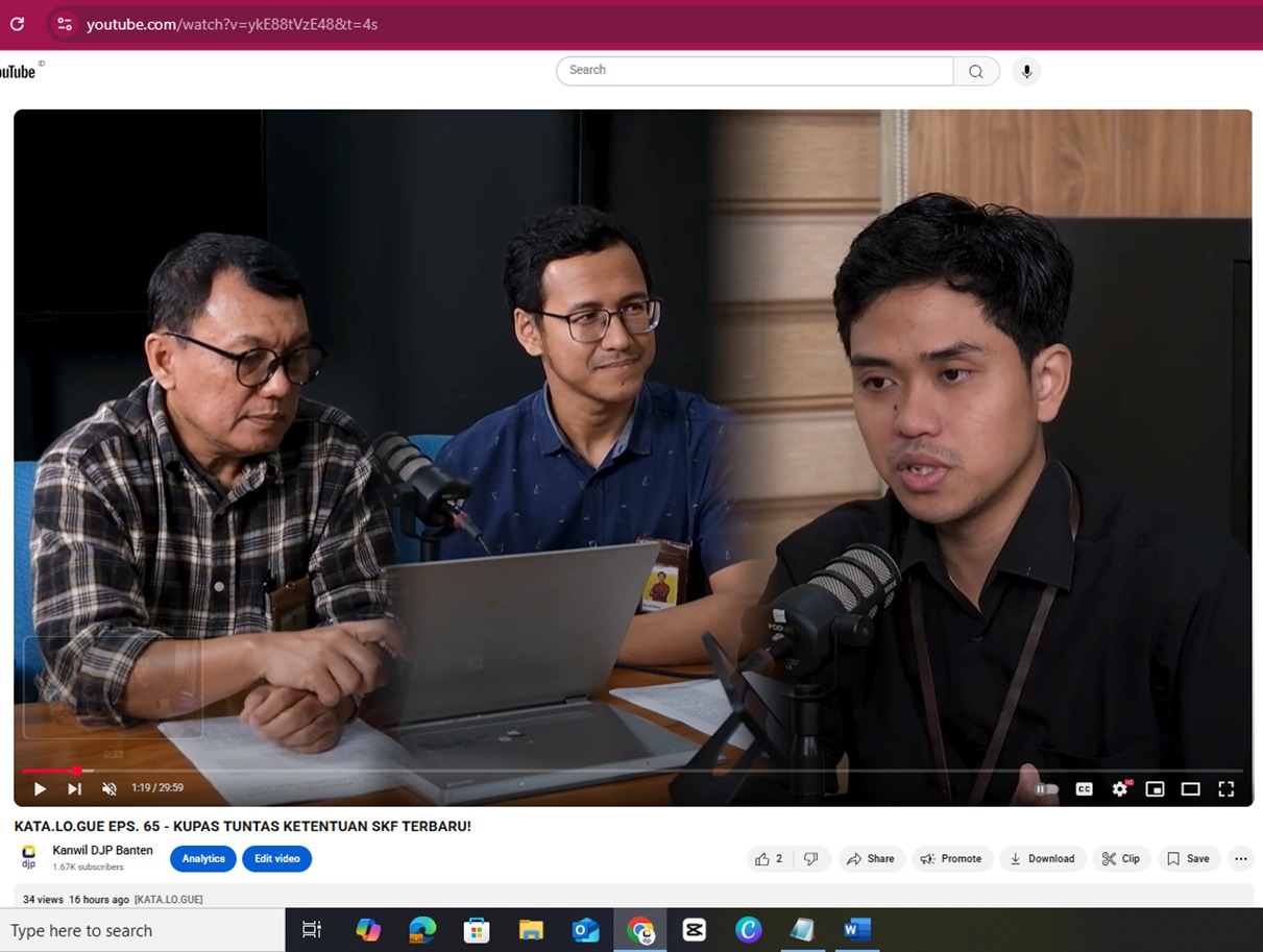 Kantor Wilayah Direktorat Jenderal Pajak (Kanwil DJP) Banten mengupas tuntas ketentuan terbaru terkait surat keterangan fiscal (SKF) melalui Siniar (Podcast) “Kata.Lo.Gue” yang tayang di kanal resmi Youtube Kanwil DJP Banten @KanwilDJPBanten.