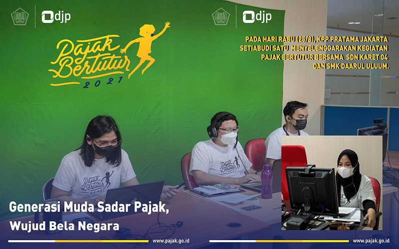 Kantor Pelayanan Pajak Jakarta Setiabudi Satu mengajak siswa Sekolah Dasar Negeri Karet 04 untuk mengikuti kegiatan Pajak Bertutur 2021 secara daring di Jakarta (Rabu, 25/8).