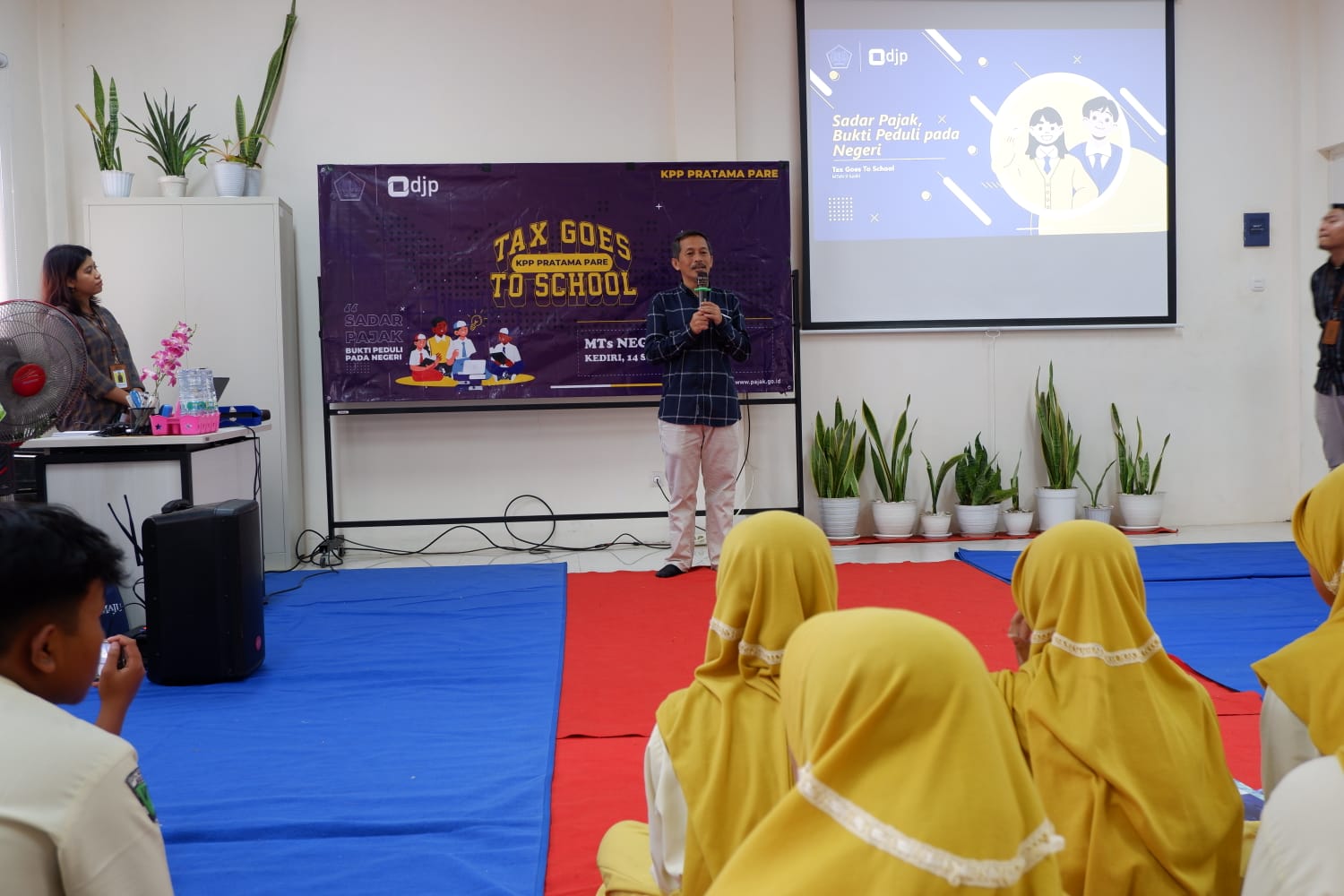 Kantor Pelayanan Pajak (KPP) Pratama Pare menggandeng Madrasah Tsanawiah Negeri (MTSN) 9 Kediri dalam menyemarakkan kegiatan Tax Goes To School (TGTS) (Kamis, 14/9). Kegiatan ini berlangsung di Aula MTSN 9 Kediri, Jalan Kilisuci, Doko, Kecamatan Ngasem, Kabupaten Kediri, Jawa Timur
