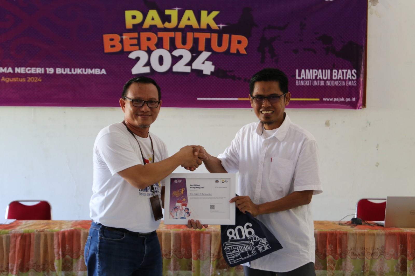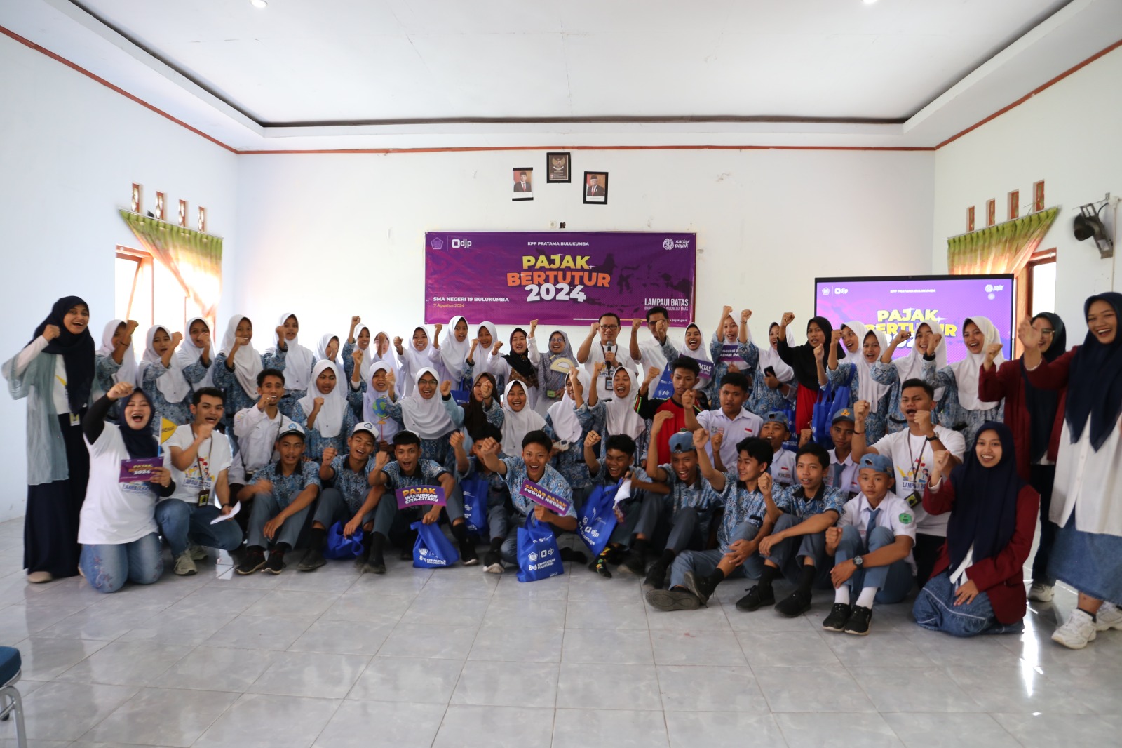 Kantor Pelayanan Pajak (KPP) Pratama Bulukumba memberikan edukasi perpajakan kepada calon generasi penerus bangsa melalui kegiatan Pajak Bertutur yang diselenggarakan secara serentak di seluruh wilayah Indonesia. Tahun ini, KPP Pratama Bulukumba menggandeng Sekolah Menengah Atas Negeri (SMAN) 19 Bulukumba sebagai salah satu sekolah tujuan. Kegiatan dengan tema “Lampaui Batas, Bangkit untuk Indonesia Emas” ini dilaksanakan di Aula SMAN 19 Bulukumba yang berlokasi di Kelurahan Jalanjang, Kecamatan Gantarang, Kabupaten Bulukumba (Rabu, 7/8).