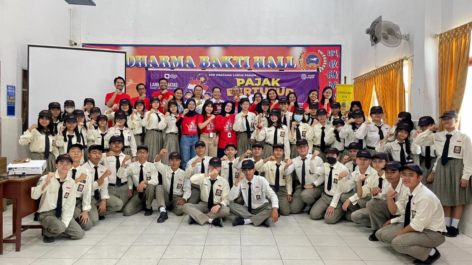 Kantor Pelayanan Pajak (KPP) Pratama Lubuk Pakam menyelenggarakan kegiatan Pajak Bertutur Tahun 2024 di SMA Swasta Dharma Bakti, Lubuk Pakam (Rabu, 7/8). Acara ini merupakan bagian dari program nasional yang digagas oleh Direktorat Jenderal Pajak (DJP), dengan tema "Lampaui Batas, Bangkit untuk Indonesia Emas." Kegiatan ini bertujuan untuk meningkatkan kesadaran pajak di kalangan generasi muda, khususnya pelajar, sebagai langkah strategis mendukung visi Indonesia Emas 2045.