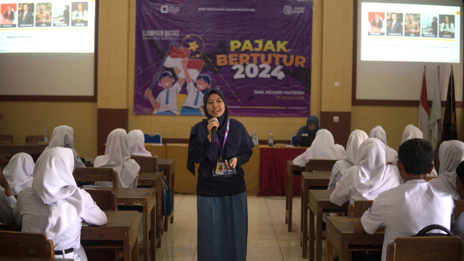 Kantor Pelayanan Pajak (KPP) Pratama Karanganyar melaksanakan kegiatan Pajak Bertutur (Patur) di SMK Negeri Matesih (Rabu, 7/8). Patur dilaksanakan pada pukul 09.00 WIB hingga pukul 12.00 WIB dengan melibatkan 72 siswa jurusan Desain Komunikasi Visual (DKV) jenjang kelas XI.