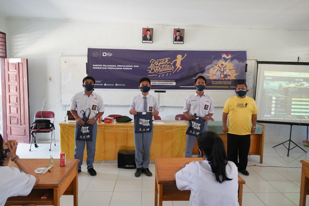 Kantor Pelayanan, Penyuluhan, dan Konsultasi Perpajakan (KP2KP) Pandan menyelenggarakan kegiatan Pajak Bertutur 2021 di SMAN1 Sorkam Barat, Tapanuli Tengah, Sumatera Utara (Rabu, 25/8).