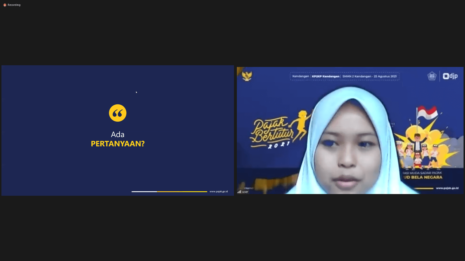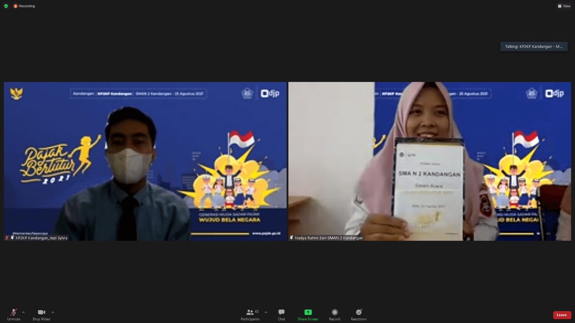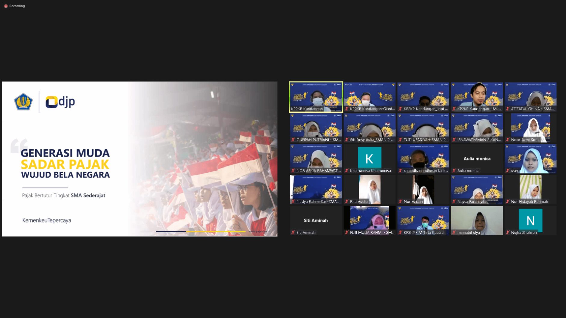 Kantor Penyuluhan, Pelayanan, dan Konsultasi Perpajakan (KP2KP) Kandangan menggelar acara Pajak Bertutur 2021 secara daring bersama SMAN 2 Kandangan (Rabu, 25/8). Mengambil tema “Generasi Muda Sadar Pajak, Wujud Bela Negara”, kegiatan pajak bertutur kali ini menjelaskan kepada siswa yang merupakan calon wajib pajak agar sadar akan pentingnya pajak dan mengapa sadar pajak dapat diartikan sebagai wujud bela negara.