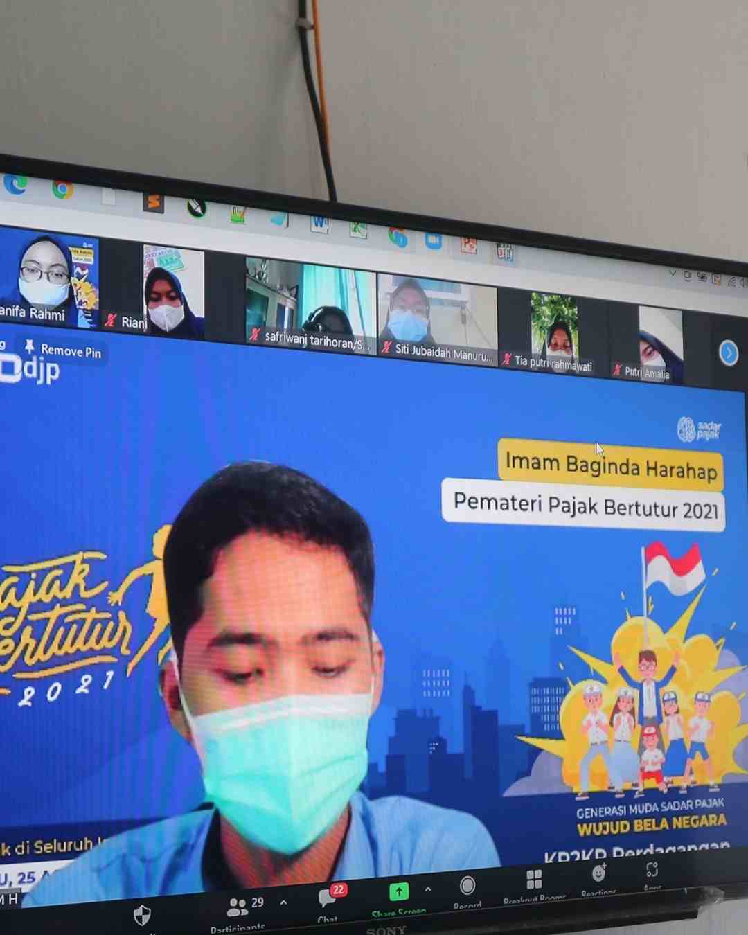 Kantor Pelayanan Penyuluhan dan Konsultasi Perpajakan (KP2KP) Perdagangan menyelenggarakan Pajak Bertutur 2021 bersama Sekolah Menengah Kejuruan (SMK) Satrya Budi 2 Perdagangan secara daring di KP2KP Perdagangan, Kabupaten Simalungun (Rabu, 25/8). Kegiatan ini dihadiri oleh 37 peserta yaitu 7 guru dan 30 siswa/i SMK Satrya Budi 2 Perdagangan.