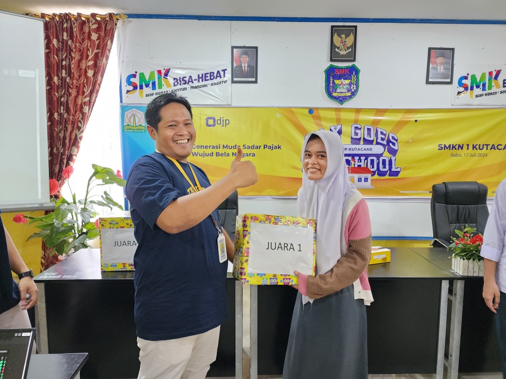 Kantor Pelayanan, Penyuluhan, dan Konsultasi Perpajakan (KP2KP) Kutacane melaksanakan kegiatan Tax Goes To School (TGTS) 2024 di Sekolah Menengah Kejuruan Negeri (SMKN) 1 Kutacane (Rabu, 17/07). Kegiatan ini diikuti oleh 30 siswa-siswi SMK Negeri 1 Kutacane.