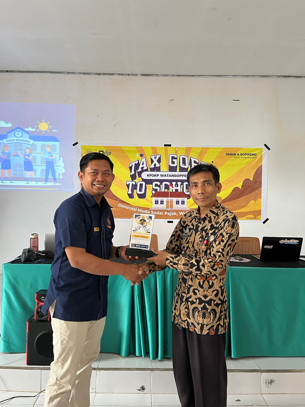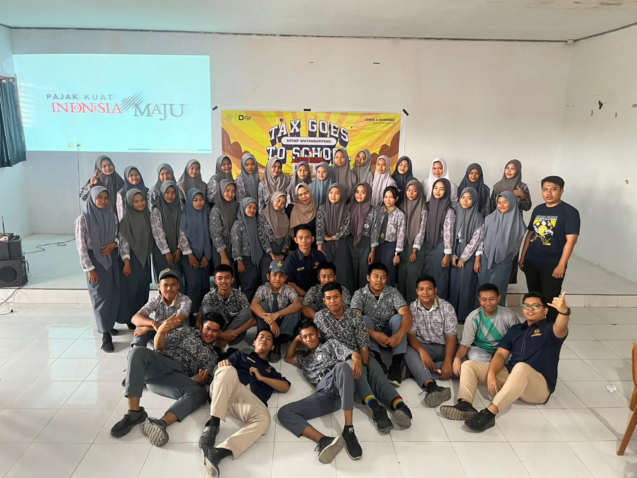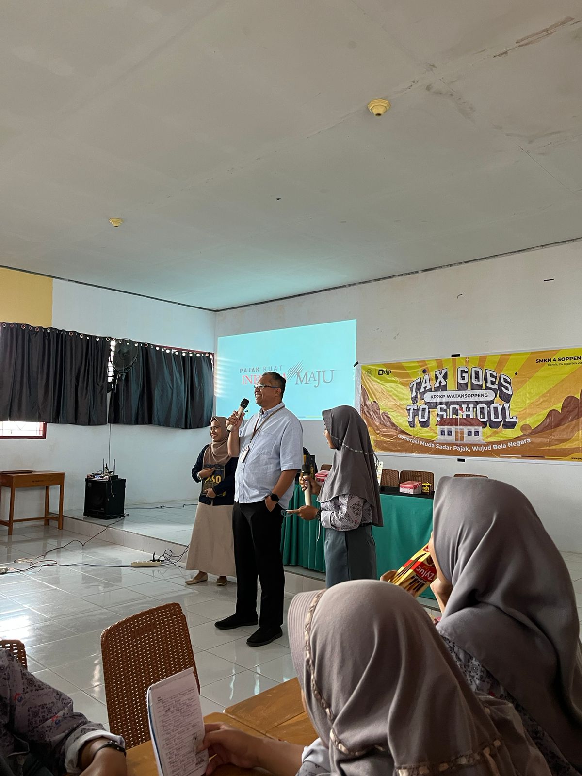 Kantor Pelayanan, Penyuluhan, dan Konsultasi Perpajakan (KP2KP) Watansoppeng bekerja sama dengan Sekolah Menengah Kejuruan (SMK) Negeri 4 Soppeng mengadakan kegiatan Tax Goes To School (TGTS) di Aula SMKN 4 Soppeng, Jalan Kayangan LR. Teratai No.121, Botto, Kec. Lalabata, Kabupaten Soppeng (Kamis, 24/08).