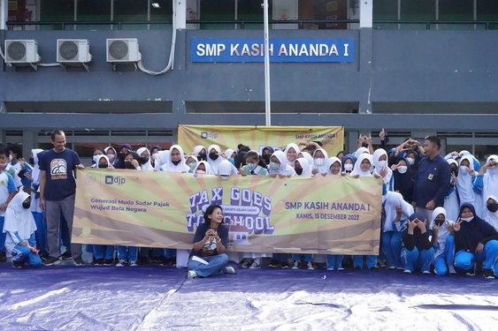 Kantor Pelayanan Pajak (KPP) Pratama Jakarta Kelapa Gading melaksanakan Tax Goes To School (TGTS) di SMP Kasih Ananda I Kelapa Gading Utara, Jakarta Utara (Kamis, 15/12). Acara TGTS ini merupakan lanjutan dari rangkaian acara Pajak Bertutur 2022 dengan tema "Sehari Mengenal, Selamanya Bangga".
