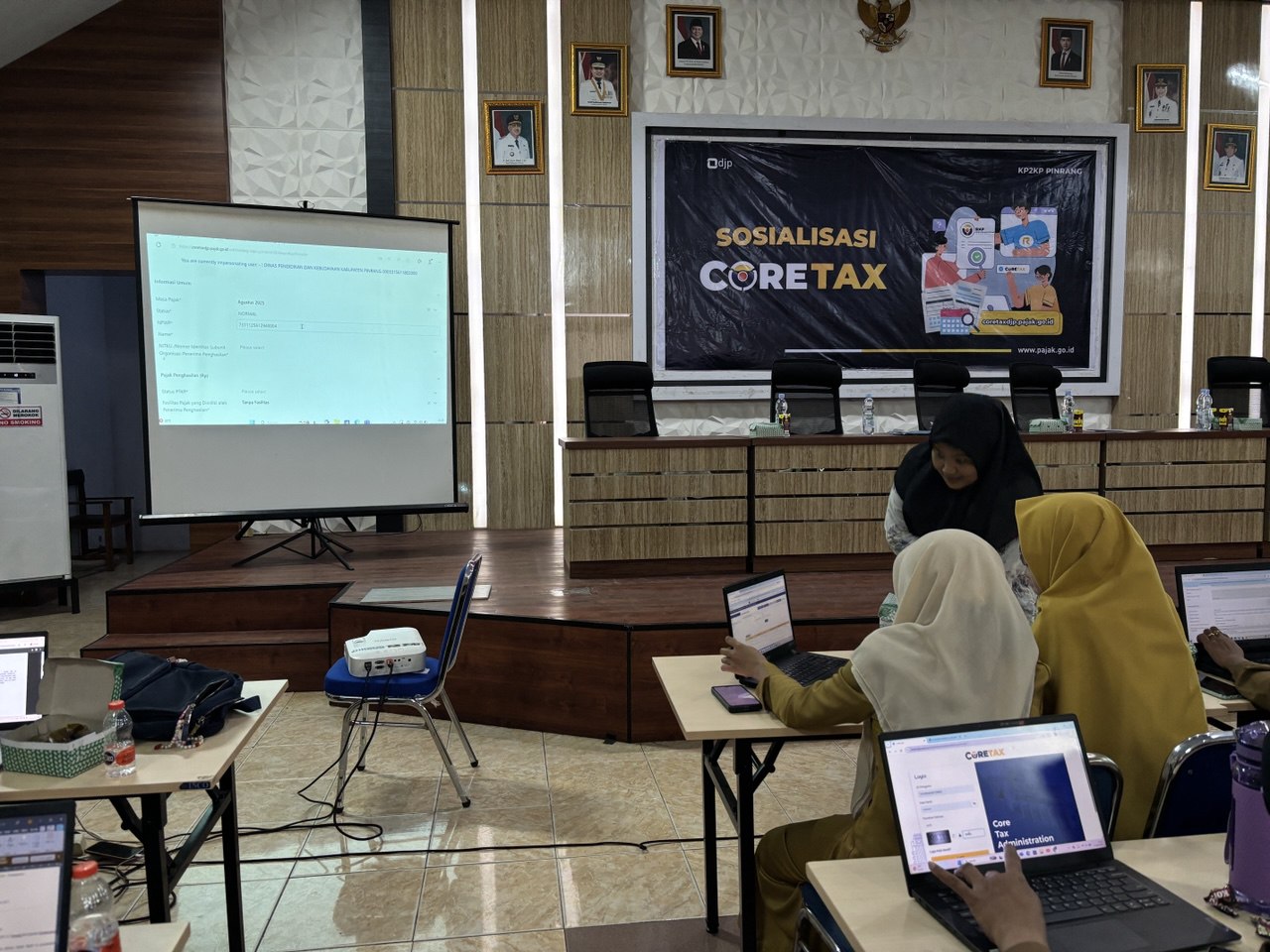 Kantor Pelayanan, Penyuluhan, dan Konsultasi Perpajakan (KP2KP) Pinrang bekerja sama dengan Kantor Pelayanan Pajak (KPP) Pratama Parepare menyelenggarakan sosialisasi penggunaan sistem Coretax DJP bagi bendahara sekolah negeri se-Kabupaten Pinrang.