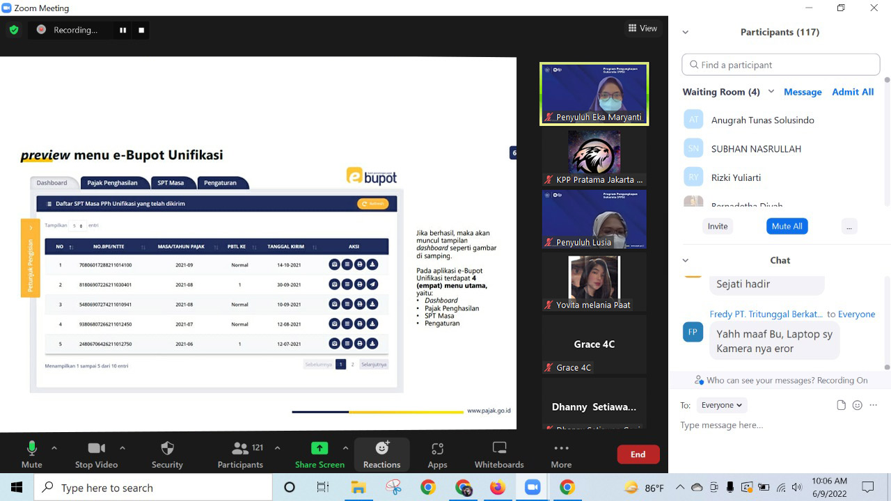 Kantor Pelayanan Pajak (KPP) Pratama Jakarta Pademangan mengadakan kelas pajak dengan tema e-Bupot Unifikasi (Kamis, 9/6). Kegiatan diselenggarakan secara daring melalui kanal Zoom Meeting dari ruang Fungsional Penyuluh Pajak KPP Pratama Jakarta Pademangan.