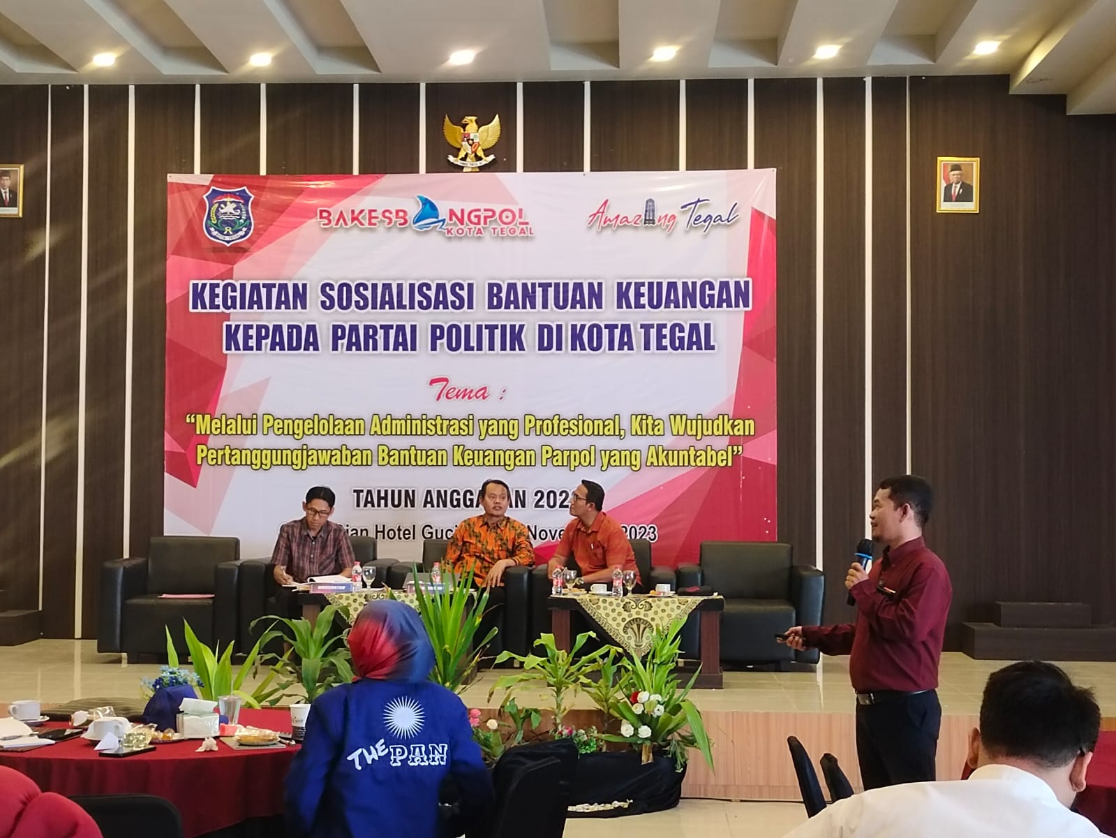 Menyambut datangnya tahun politik di Indonesia, KPP Pratama Tegal dan Badan Kesatuan Bangsa dan Politik (Bakesbangpol) Kota Tegal mengumpulkan seluruh partai politik (parpol) pada acara Sosialisasi Bantuan Keuangan kepada Partai Politik di Kota Tegal (Minggu, 19/11). Kegiatan yang diselenggarakan di Hotel Grand Dian Guci tersebut setidaknya dihadiri hingga puluhan perwakilan parpol.
