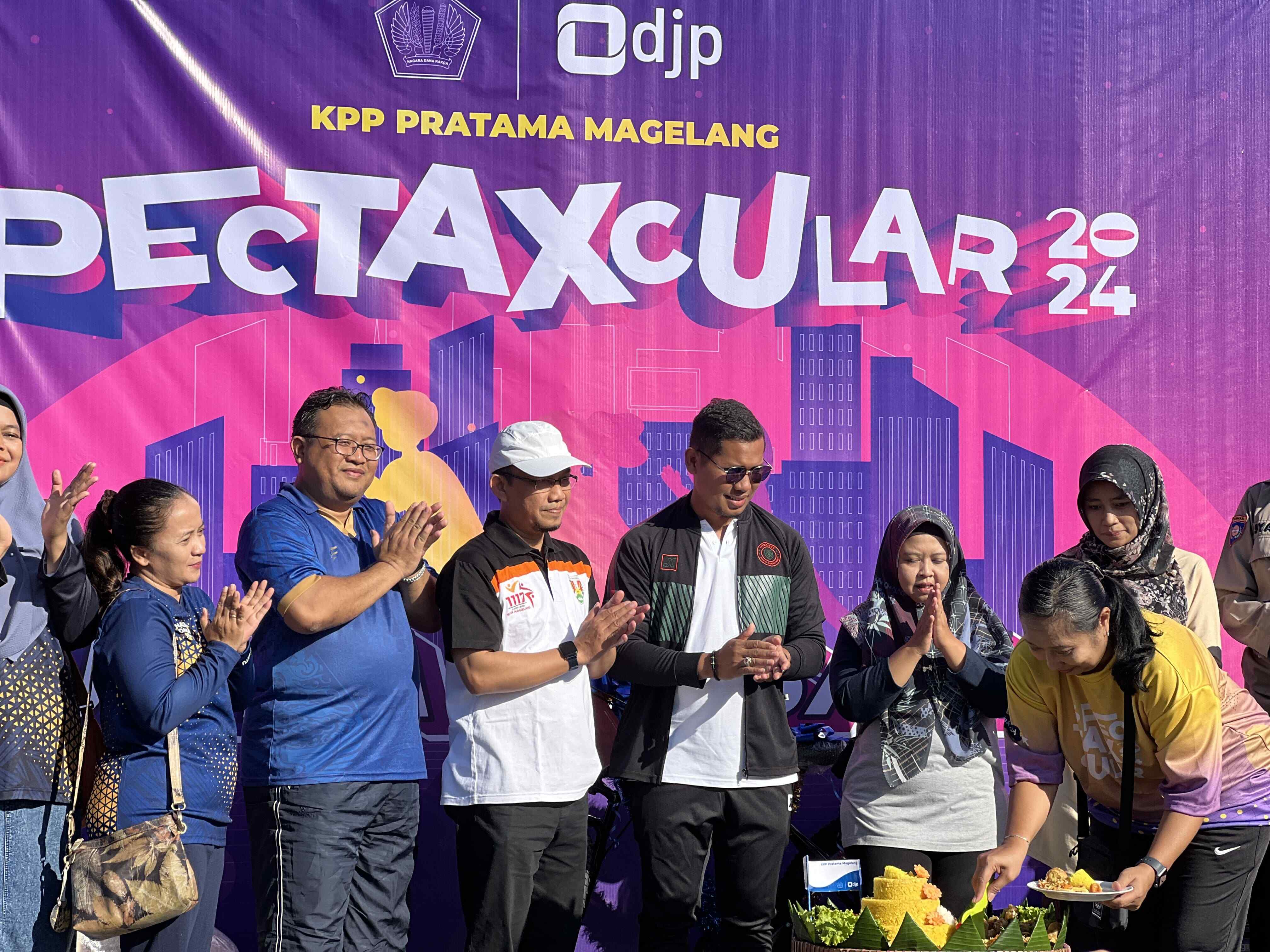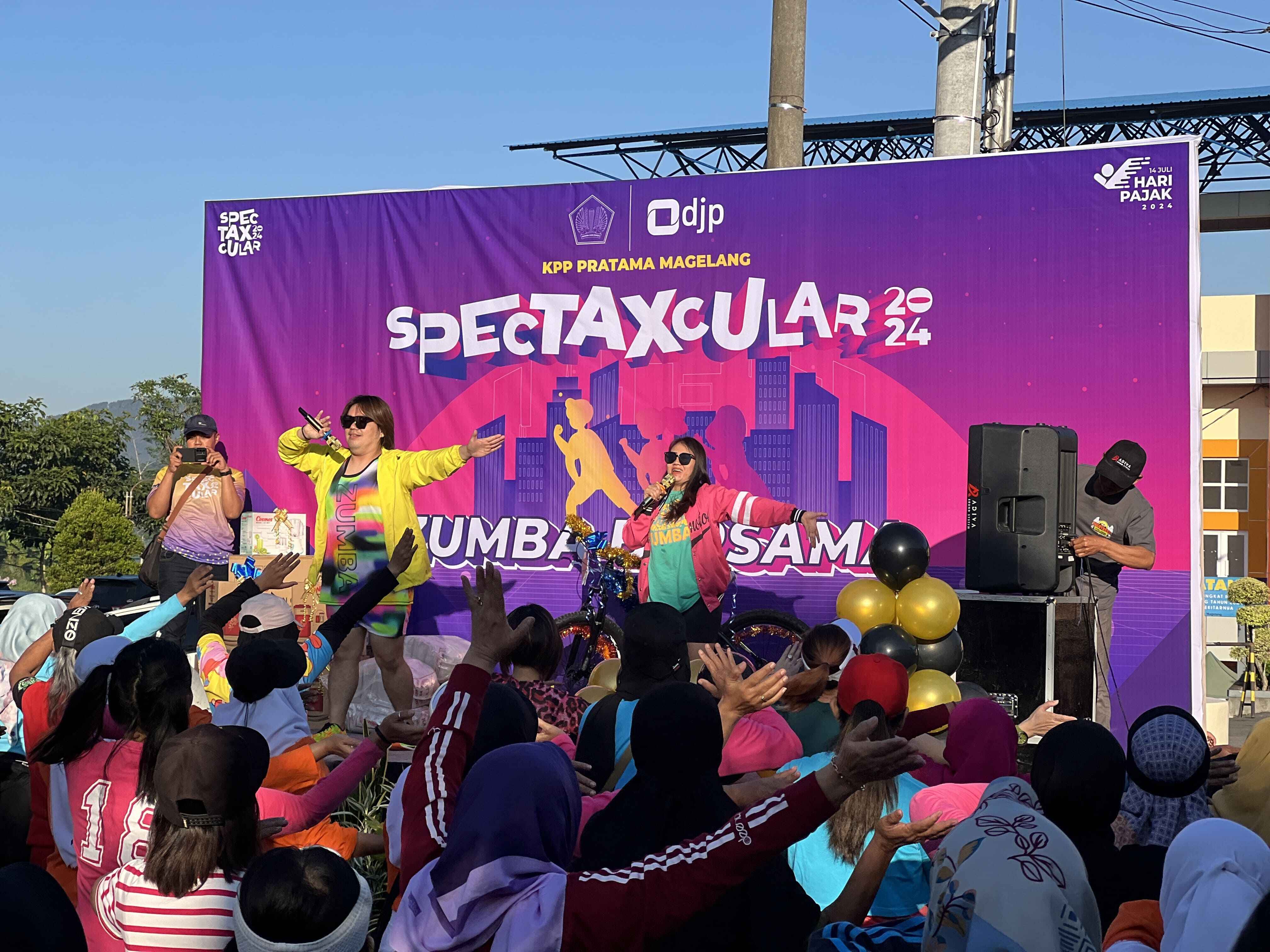 Spectaxcular kembali hadir pada tahun 2024. Kantor Pelayanan Pajak (KPP) Pratama Magelang sebagai salah satu unit vertikal Direktorat Jenderal Pajak (DJP) menyelenggarakan kegiatan Spectaxcular 2024 di Sanden Sport Center, Kota Magelang (14/7). Berbalut kemasan zumba bersama dan kampanye simpatik, Spectaxcular kali ini diikuti oleh sekitar 300 lebih masyarakat Magelang.