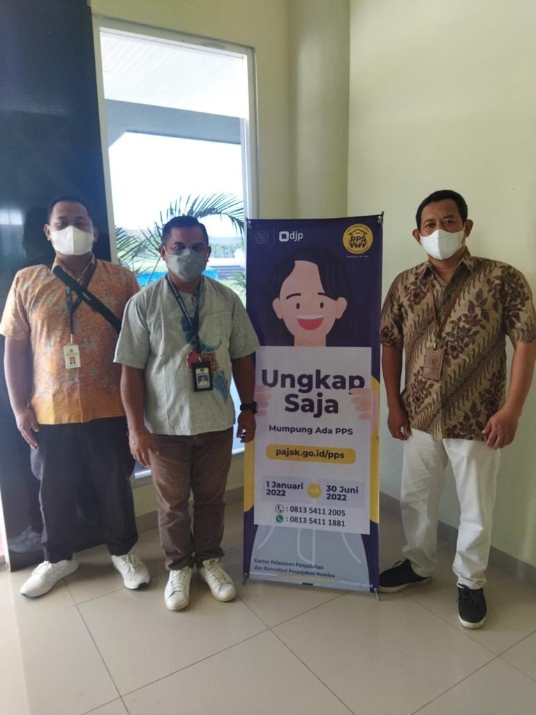 Kantor Pelayanan, Penyuluhan, dan Konsultasi Perpajakan (KP2KP) gencar melakukan kegiatan publikasi Program Pengungkapan Sukarela (PPS) kepada masyarakat di Kabupaten Buru, Maluku (Jumat, 18/2). Upaya ini dilakukan dalam rangka menyukseskan Program Pengungkapan Sukarela yang berlaku mulai 1 Januari 2022 sampai dengan 30 Juni 2022.