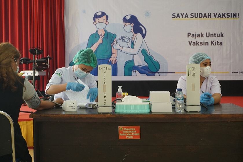 Dalam rangka menyukseskan program pemerintah dalam menanggulangi Covid-19, KPP Pratama Timika mengikuti vaksinasi Covid-19 tahap pertama di Aula Lantai 5 KPP Pratama Timika, Kabupaten Mimika, Papua (Senin, 29/3). Kegiatan ini diikuti oleh 90 pegawai baik yang berstatus PNS maupun Pegawai Pemerintah Non Pegawai Negeri (PPNPN).
