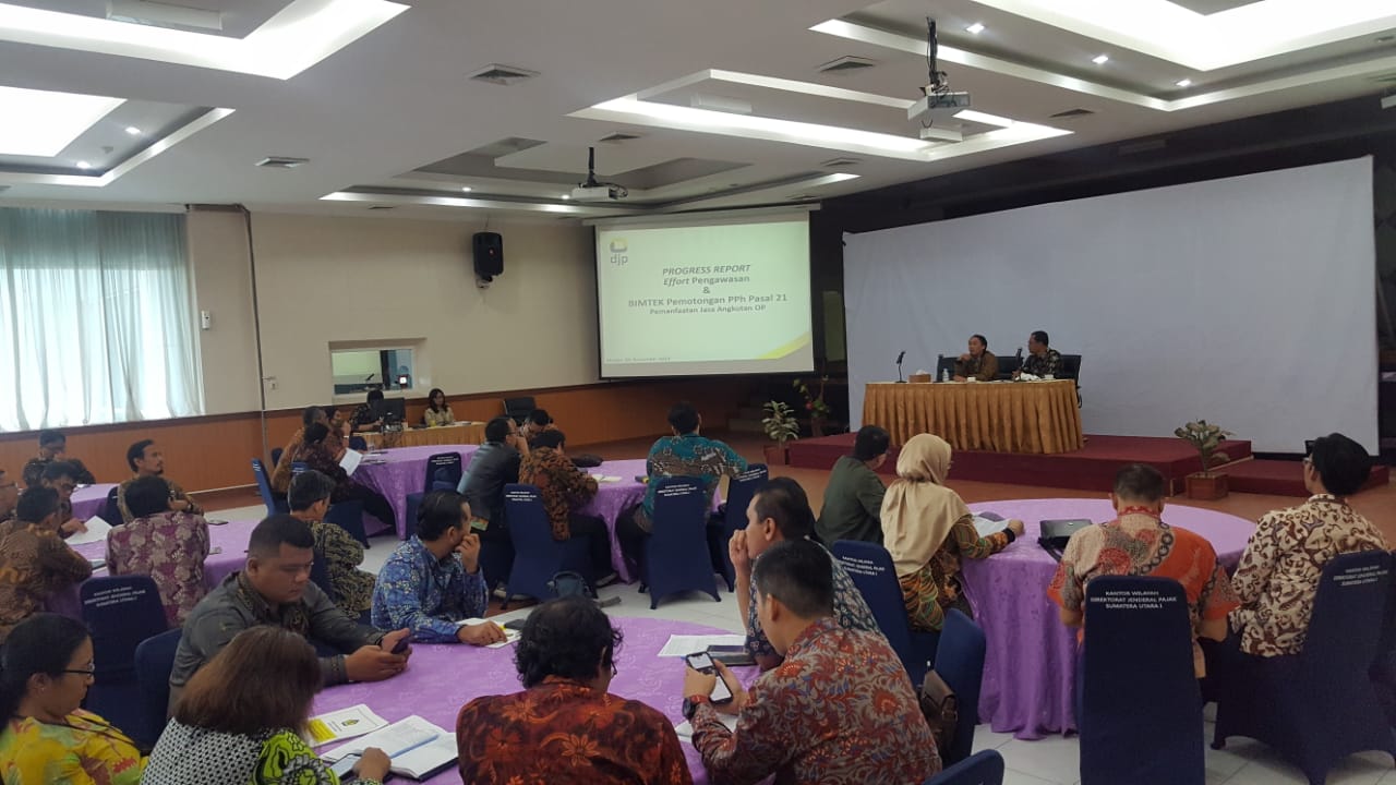 Kantor Wilayah (Kanwil) Direktorat Jenderal Pajak (DJP) Sumatera Utara I mengadakan Rapat Progress Report Effort Pengawasan dan Bimbingan Teknis Pemotongan PPh Pasal 21 atas Pemanfaatan Jasa Angkutan yang Dimiliki Orang Pribadi bertempat di Aula Kantor Lantai 8, Pematang Siantar (Selasa, 5/11).