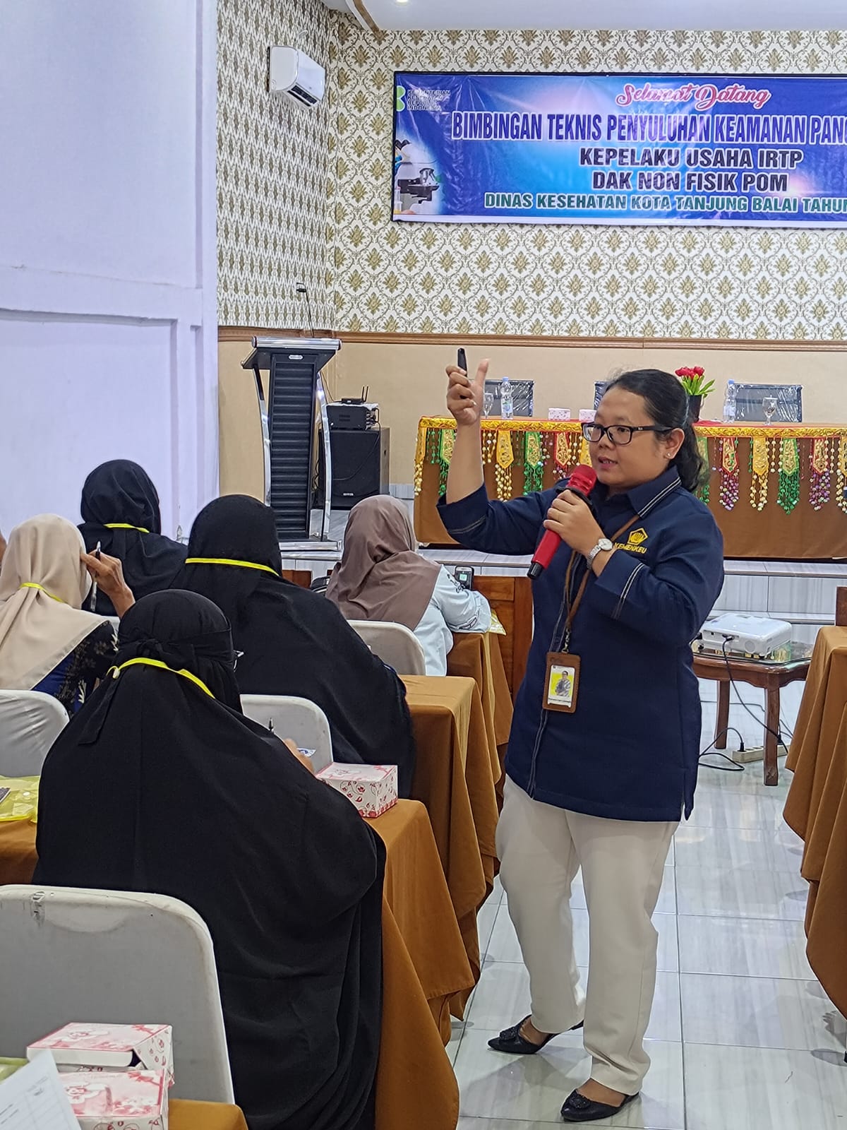 Materi dalam bimbingan teknis kali ini meliputi standar BPOM makanan, pendaftaran izin usahan melalui aplikasi OSS, kesehatan makanan dan lingkungan kerja, dan perpajakan. Tercatat sebanyak 38 pelaku UMKM Industri Rumah Tangga Pangan (IRTP) se Kota Tanjung Balai ikut dalam kegiatan bimbingan teknis ini.