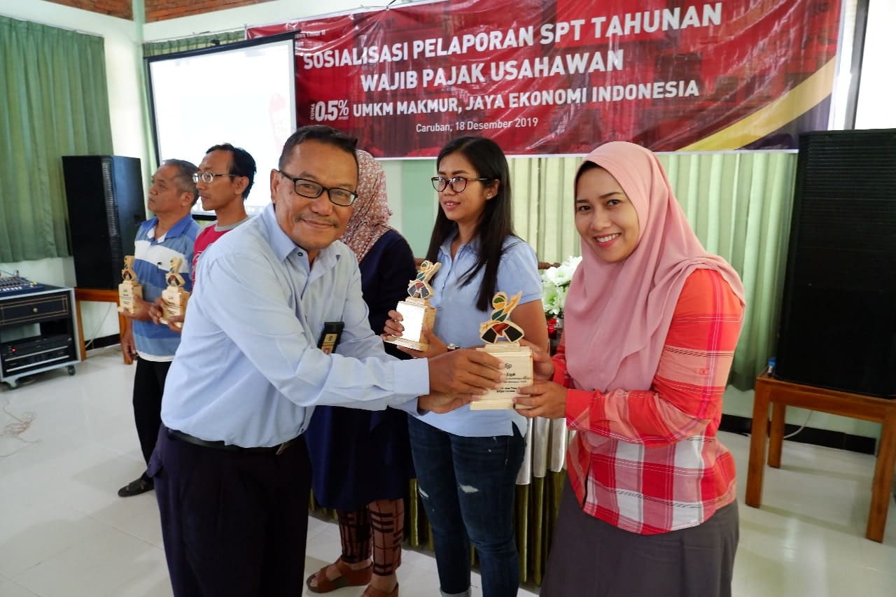Setelah sesi tanya jawab, acara dilanjutkan dengan penyerahan plakat oleh Kepala KP2KP Caruban kepada seluruh peserta yang hadir. Soetarwo menuturkan bahwa pemberian plakat ini sebagai wujud apresiasi dan terima kasih KP2KP Caruban kepada seluruh peserta yang hadir karena telah taat membayar pajak selama tahun berjalan ini.
