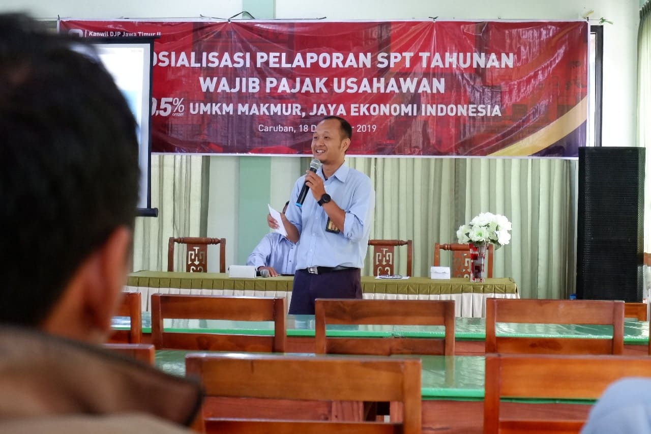 Acara dibuka oleh Soetarwo selaku Kepala KP2KP Caruban. Sedangkan materi utama disampaikan oleh pegawai KP2KP Caruban Eko Wahyu Kurniawan. Dalam sosialisasi kali ini, Eko menyampaikan materi terkait PP 23 Tahun 2018 dan kewajiban pelaporan SPT Tahunan. Tak hanya materi tetapi para peserta yang hadir diajak untuk praktik langsung pengisian e-Form SPT Tahunan 1770.