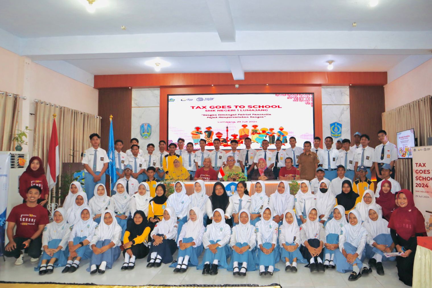 Kantor Pelayanan, Penyuluhan dan Konsultasi Perpajakan (KP2KP) Lumajang berkolaborasi bersama Kantor Pelayanan Pajak (KPP) Pratama Probolinggo dalam menggelar Tax Goes To School (TGTS) di Sekolah Menengah Kejuruan Negeri (SMKN) 1 Lumajang, Jawa Timur (Senin, 29/7). Acara ini diiikuti oleh 60 siswa perwakilan dari seluruh kelas dan jurusan di SMKN 1 Lumajang.
