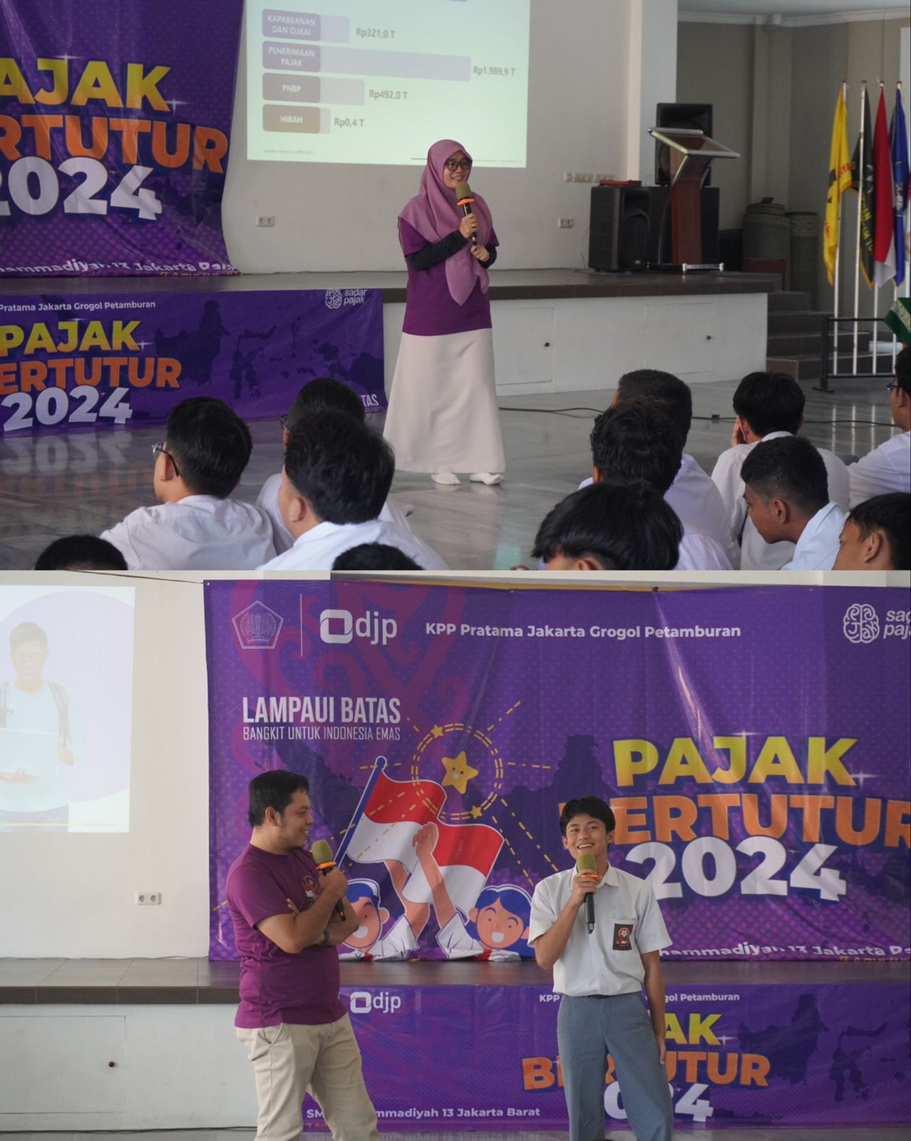 Kantor Pelayanan Pajak (KPP) Pratama Jakarta Grogol Petamburan mengadakan kegiatan Pajak Bertutur 2024 di Sekolah Menengah Atas (SMA) Muhammadiyah 13 Jakarta Barat, Grogol Petamburan, Jakarta Barat (Rabu, 7/8).