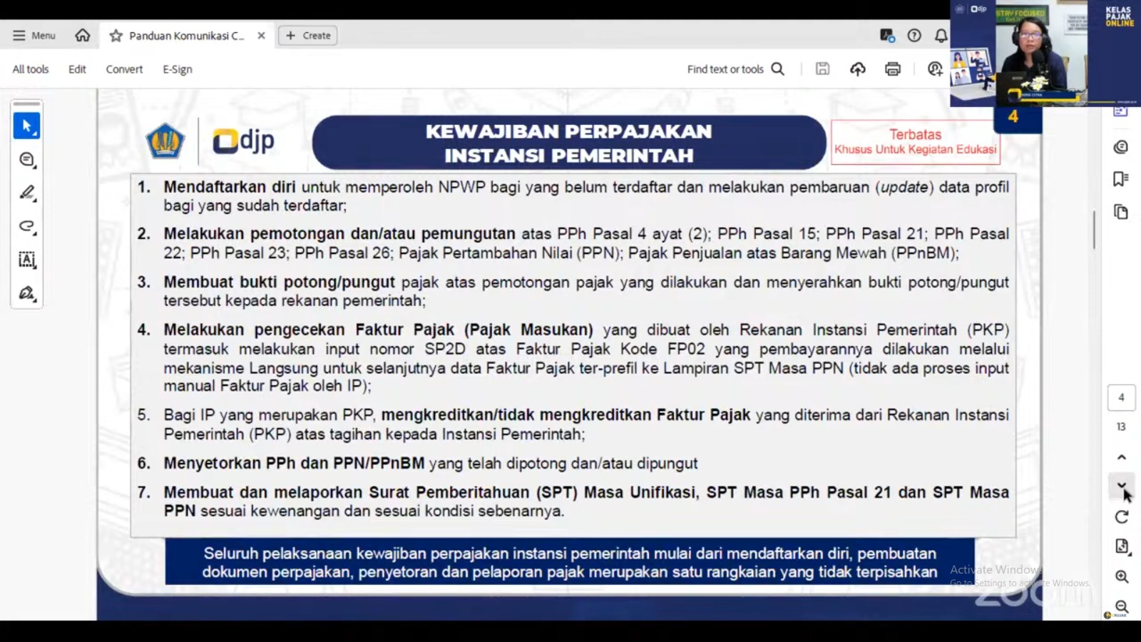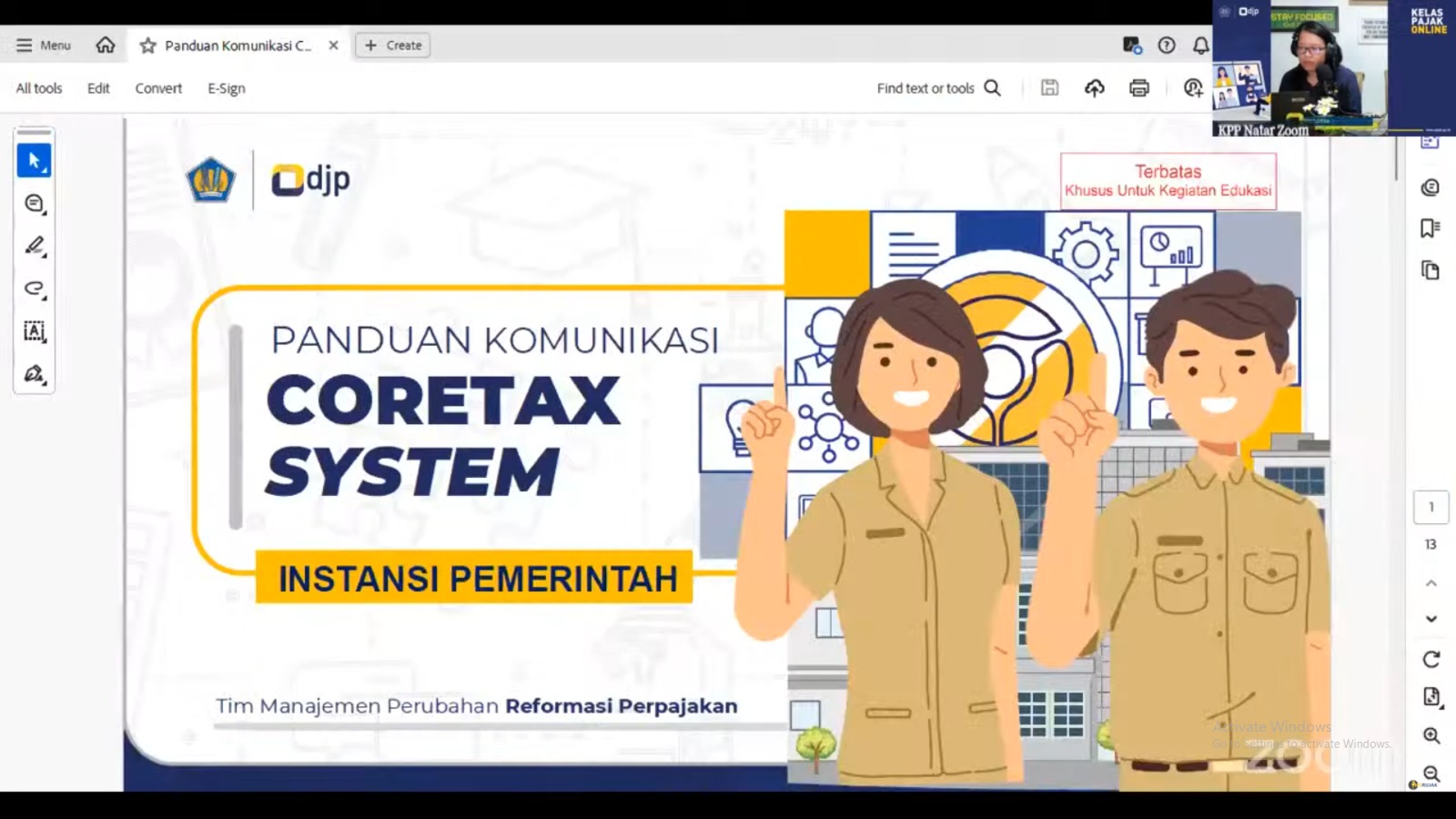 Kantor Pelayanan Pajak (KPP) Pratama Natar melaksanakan Edukasi Coretax yang dilaksanakan secara daring melalui aplikasi Zoom Meeting di Kabupaten Lampung Selatan, Lampung (Rabu, 18/12). Kegiatan ini dihadiri oleh perwakilan dari 40 instansi pemerintah yang berada di Kabupaten Pringsewu dan Kabupaten Tanggamus. Kegiatan ini dilaksanakan untuk meningkatkan pemahaman dan kompetensi para bendahara instansi pemerintah.
