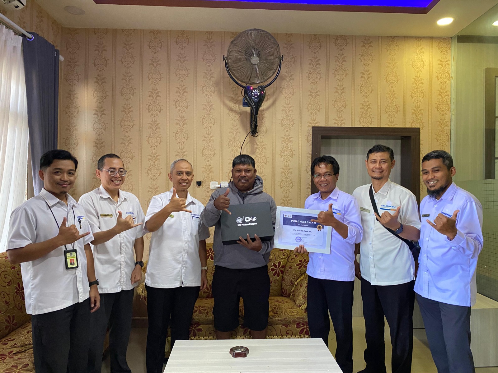 Kantor Pelayanan, Penyuluhan, dan Konsultasi Perpajakan (KP2KP) Sidrap melakukan kunjungan ke lokasi salah satu pengusaha alumunium di Kabupaten Sidrap dalam rangka memberikan penghargaan atas kontribusi dan kepatuhan pajak sepanjang tahun 2023 (Senin, 12/8).