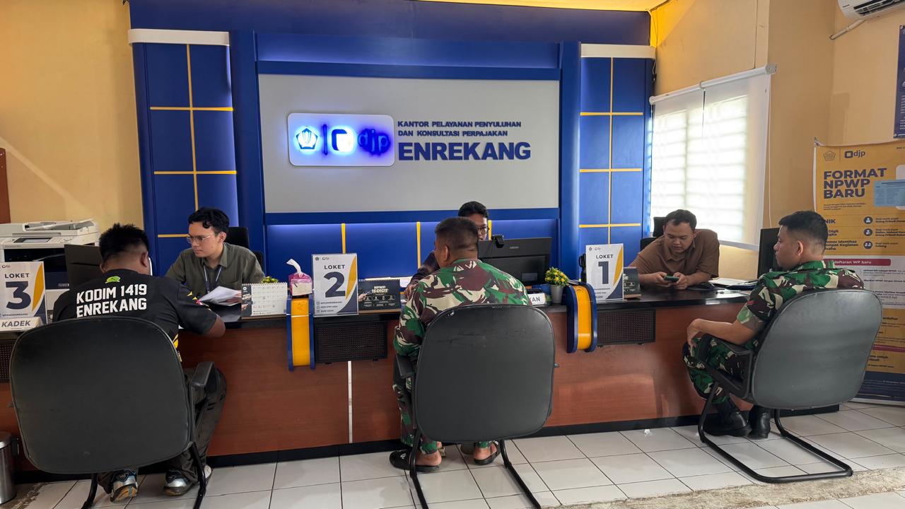 Kantor Pelayanan, Penyuluhan, dan Konsultasi Perpajakan (KP2KP) Enrekang menerima kunjungan sejumlah prajurit Komando Distrik Militer (Kodim) 1419 Enrekang yang ingin mendapat asistensi pelaporan Surat Pemberitahuan (SPT) Tahunan lebih awal di Kabupaten Enrekang (Selasa, 14/1). Langkah ini mencerminkan kedisiplinan mereka sebagai abdi negara sekaligus menjadi teladan bagi masyarakat Kabupaten Enrekang dalam menaati kewajiban perpajakan.