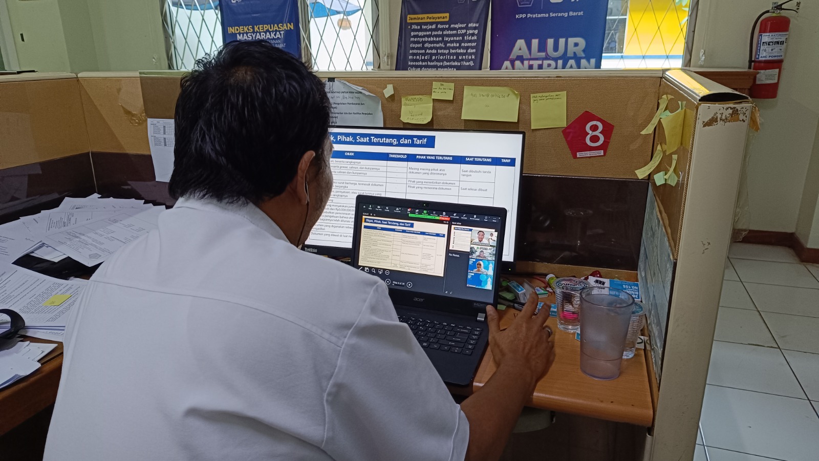 Penyuluh Pajak KPP Pratama Serang Barat Slamet Riyanto dan Danang Putra Murti menyampaikan materi secara rinci dan interaktif. Mereka tidak hanya menjelaskan teori, tetapi juga memberikan contoh-contoh kasus yang sering dihadapi oleh para ASN dalam pelaksanaan tugasnya.