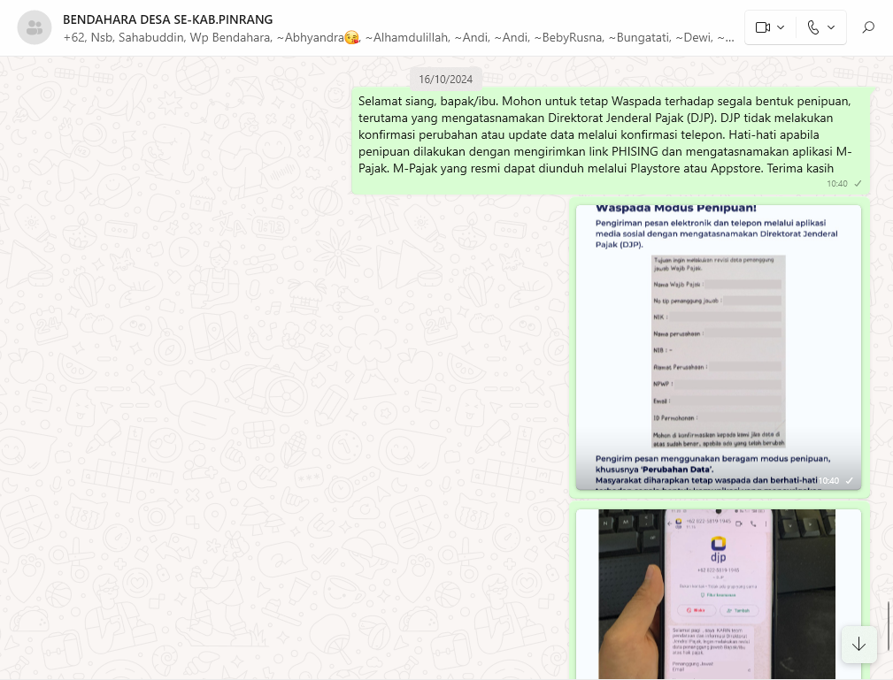 Dengan semakin maraknya penipuan yang memanfaatkan teknologi, KP2KP Pinrang meminta masyarakat untuk lebih berhati-hati dan selalu memeriksa sumber informasi yang diterima sebelum bertindak.