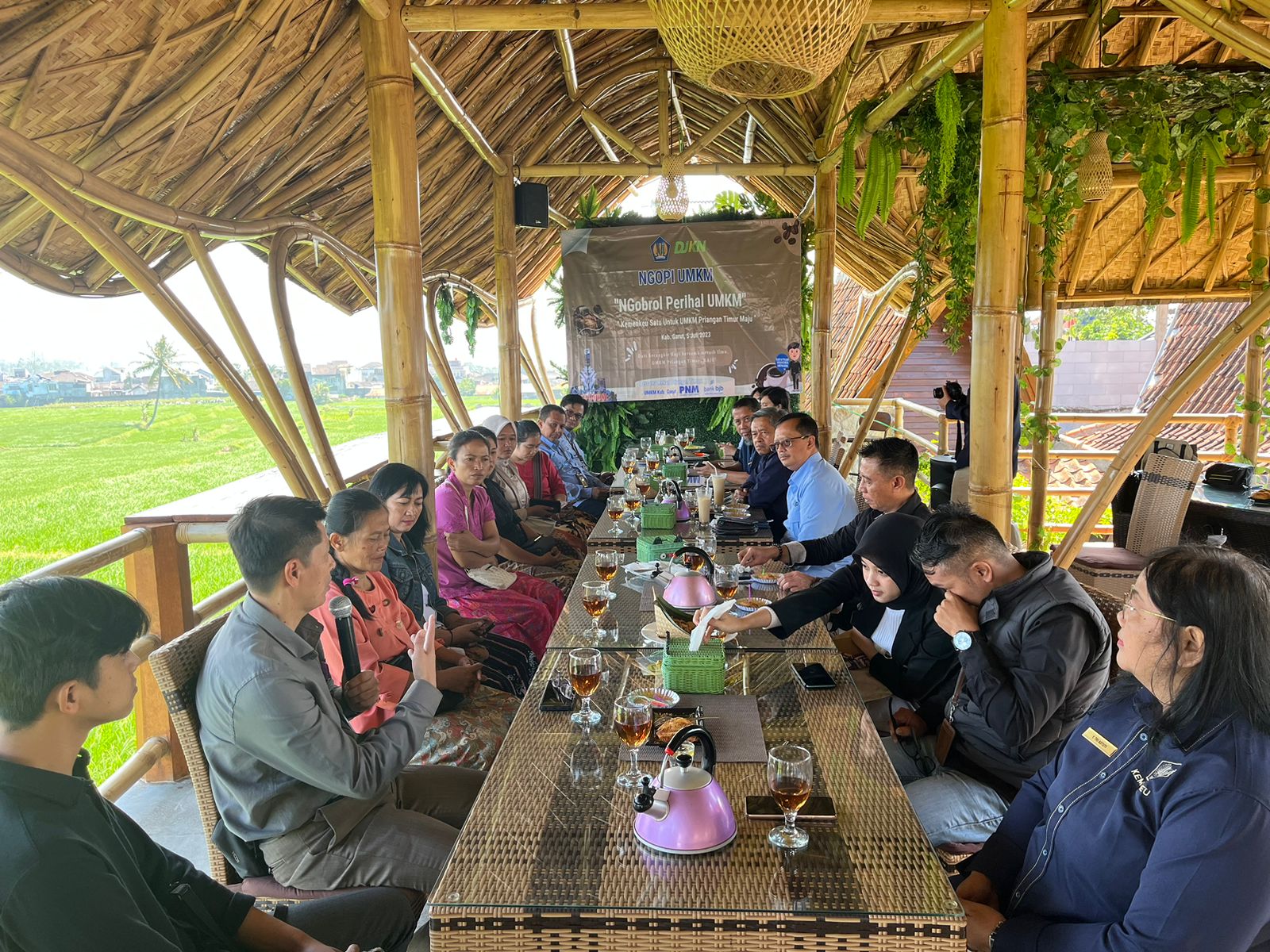Kantor Pelayanan Pajak (KPP) Pratama Garut dan Kantor Pelayanan Kekayaan Negara dan Lelang (KPKNL) Tasikmalaya, yang tergabung dalam Kemenkeu Satu, menggandeng pelaku Usaha Mikro, Kecil dan Menengah (UMKM) di Kabupaten Garut dalam kegiatan bertajuk ‘Ngopi’, Ngobrol Perihal UMKM. Kegiatan ini diselenggarakan di Resto Kampung Muara Sunda Jl. Raya Bayongbong KM 3, Garut Kota (Rabu, 5/7). Kegiatan kali ini juga dihadiri oleh perwakilan Bank Jawa Barat (BJB) dan PT Permodalan Nasional Madani (PNM).