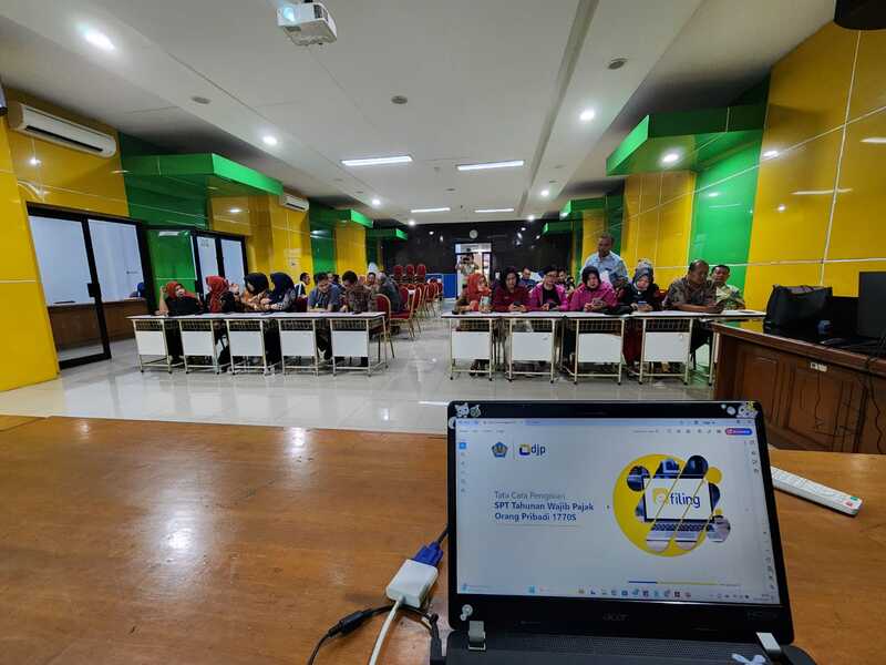 Kantor Pelayanan Pajak (KPP) Pratama Bandung Cibeunying menyelenggarakan kegiatan bimbingan teknis dan asistensi pelaporan Surat Pemberitahuan (SPT) Tahunan dan layanan permohonan EFIN bagi kurang lebih 100 pegawai di lingkungan Dinas Pendidikan Kota Bandung yang beralamat di Jalan Ahmad Yani, Kota Bandung (Jumat, 21/2).