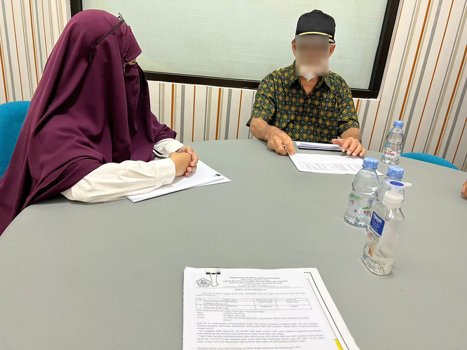 Kantor Pelayanan Pajak (KPP) Pratama Majene menerima kunjungan dari penunggak pajak di ruang rapat KPP Pratama Majene, Kabupaten Majene (Senin, 6/12). Wajib pajak tersebut merupakan salah satu penunggak pajak yang sebelumnya telah dilakukan penyitaan berupa pemblokiran rekening oleh Juru Sita Pajak Negara (JSPN) KPP Pratama Majene.