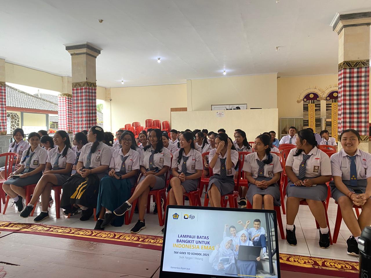 Sebagai upaya menanamkan pemahaman dan kesadaran perpajakan sejak usia sekolah, Kantor Pelayanan Pajak (KPP) Pratama Badung Utara bersama Kantor Pelayanan, Penyuluhan, dan Konsultasi Perpajakan (KP2KP) Kerobokan menyelenggarakan kegiatan Tax Goes To School (TGTS) di SMA Negeri 1 Petang, Kecamatan Petang, Kabupaten Badung, Bali (Selasa, 30/7).