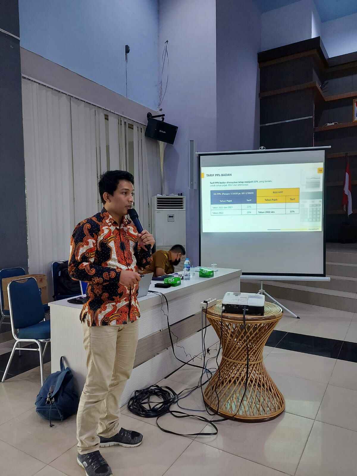 Kantor Pelayanan Penyuluhan dan Konsultasi Perpajakan (KP2KP) Sambas menghadiri undangan dari Dinas Sosial Pemberdayaan Masyarakat dan Desa (Dinsos PMD) Kabupaten Sambas sebagai narasumber pada acara Peningkatan Kapasitas Pengurus Badan Usaha Milik Desa (Bumdes). Acara ini diselenggarakan di aula Kantor Badan Kepegawaian dan Pengembangan Sumber Daya Manusia Aparatur Daerah Kabupaten Sambas, Sambas (Selasa, 23/11).