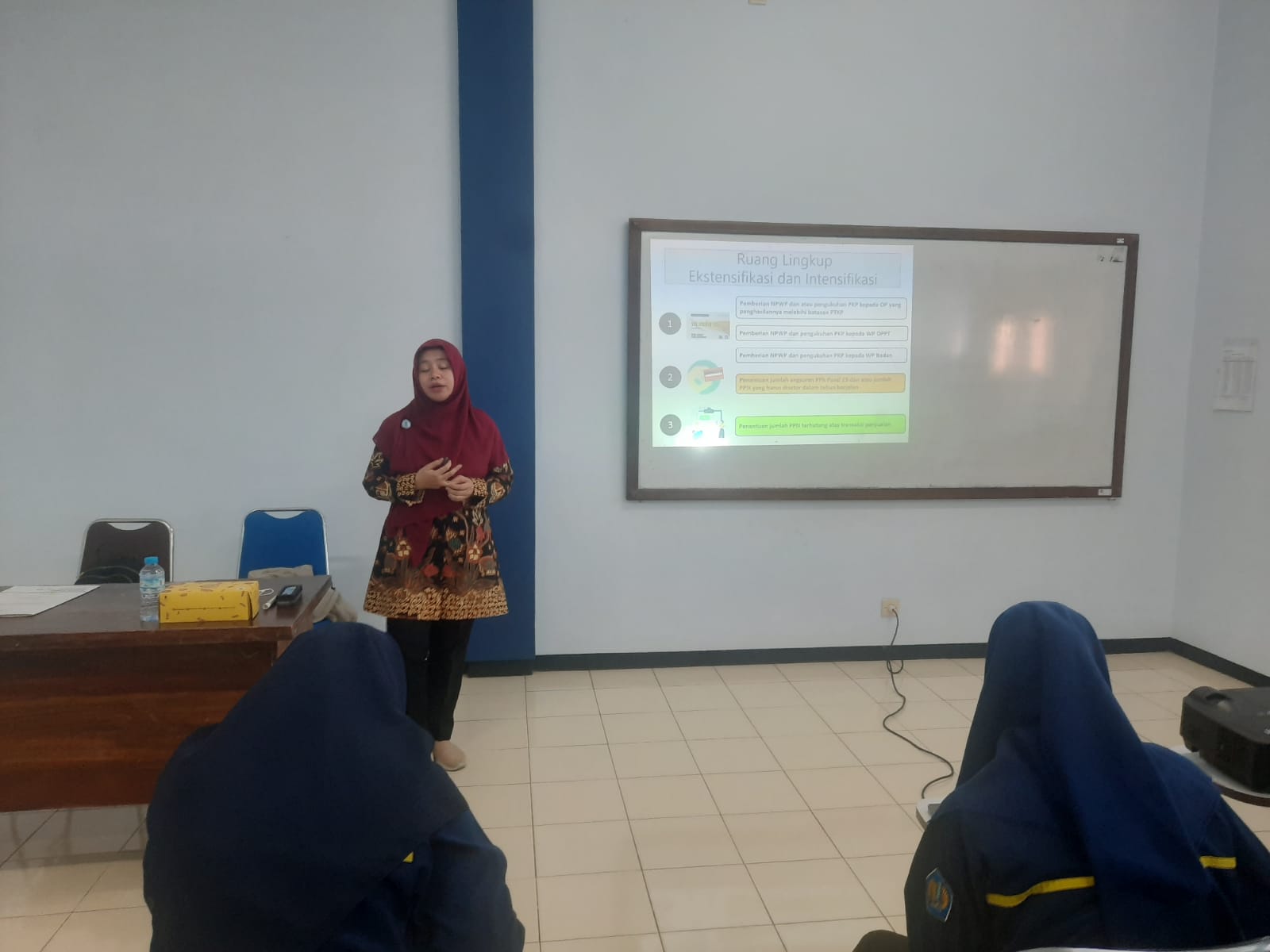 Kegiatan Edukasi dilaksanakan di ruang 8, kampus 1 PSDKU Polinema Kota Kediri dan dihadiri oleh puluhan mahasiswa PSDKU Polinema kota Kediri. Narasumber dalam kegiatan ini adalah Fungsional Penyuluh Pajak KPP Pratama Pare, Dyah Kusuma Wardani dan Faneta Raakhee Asa Putri. Dalam paparannya, Dyah dan Faneta menjelaskan mengenai gambaran umum ekstensifikasi dan intensifikasi perpajakan, tata cara ekstensifikasi, target ekstensifikasi, serta ruang lingkup ekstensifikasi dan intensifikasi perpajakan.