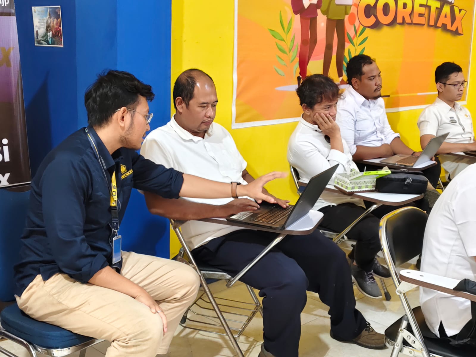 Kantor Pelayanan, Penyuluhan dan Konsultasi Perpajakan (KP2KP) Sekadau melakukan asistensi pelaporan surat pemberitahuan (SPT) masa menggunakan Coretax DJP kepada Bendahara Instansi Pemerintah Kabupaten (Pemkab) Sekadau di Aula KP2KP Sekadau, Kabupaten Sekadau (Rabu, 13/8).