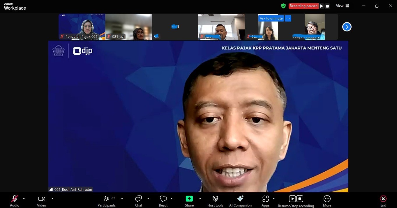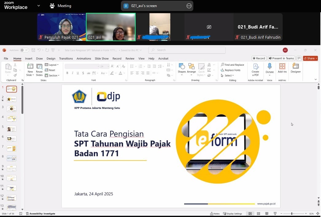 Kantor Pelayanan Pajak (KPP) Pratama Jakarta Menteng Satu menggelar edukasi perpajakan Surat Pemberitahuan (SPT) Tahunan Badan 1771 melalui kelas pajak secara daring melalui aplikasi Zoom Meeting di KPP Pratama Jakarta Menteng Satu, Jakarta Pusat (Senin, 28/4).