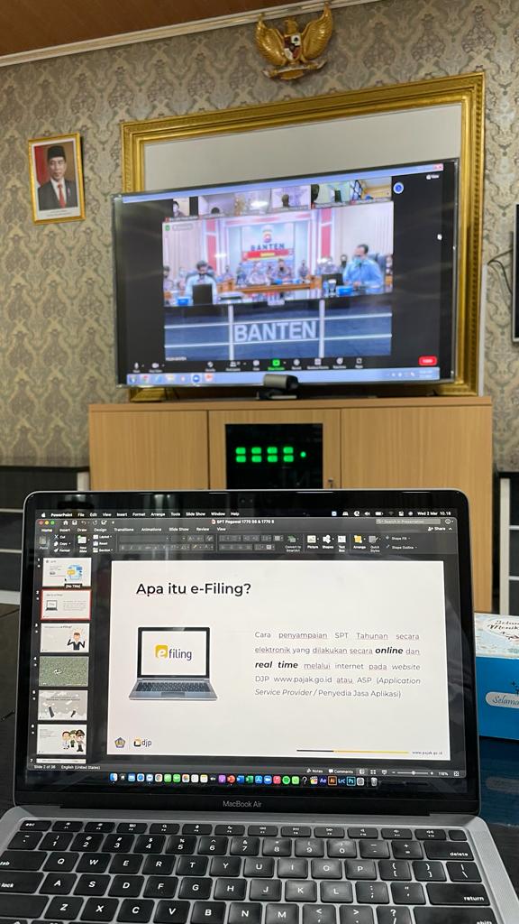 Kepolisian Daerah (Polda) Provinsi Banten berkolaborasi dengan Kantor Pelayanan Pajak (KPP) Pratama Serang Barat melaksanakan sosialisasi perpajakan yang dihadiri seluruh satker yang ada di lingkungan Polda Banten. Acara diadakan secara hybrid yang berlangsung dari ruangan Video Konferensi Polda Banten, Kota Serang (Rabu, 02/03).