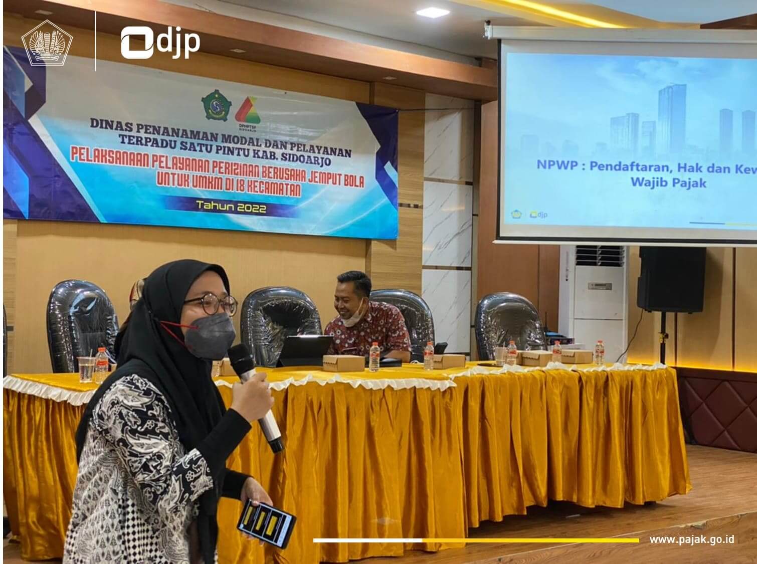 Kantor Pelayanan Pajak (KPP) Pratama Sidoarjo Selatan menggelar kegiatan penyuluhan Jemput Bola Pelaku Usaha Mikro, Kecil, dan Menengah melalui kerja sama dengan Dinas Penanaman Modal dan Pelayanan Terpadu Satu Pintu Kabupaten Sidoarjo bertempat di Aula Kantor Kecamatan Sidoarjo, Kab. Sidoarjo (Selasa 24/05).
