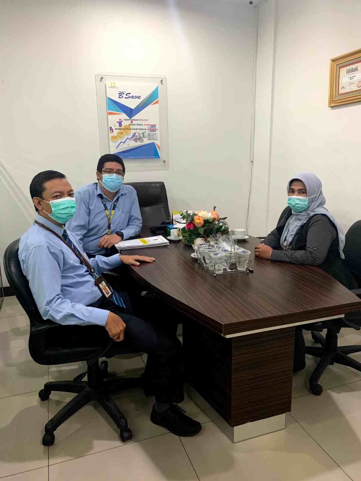 Arum yang didampingi oleh Kepala Seksi Pemeriksaan, Penilaian dan Penagihan (P3) Kokoh Getsemany Liberty, dan Jurusita Hendriko Nababan disambut hangat oleh Direktur Kepatuhan BPR Bintan Siti Harlisah.