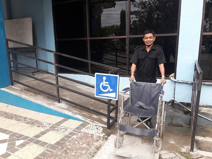 "Bulan Desember lalu ada seorang wajib pajak yang mengalami kesulitan turun dari mobilnya karena keterbatasan fisik, jadi Saya ambilkan kursi roda dan Saya bantu masuk ke kantor Pak," tutur Hamzah salah seorang petugas keamanan di KPP Pratama Bulukumba. Hamzah menambahkan bahwa wajib pajak penyandang disabilitas tidak usah merasa ragu atau takut untuk datang ke KPP Pratama Bulukumba sekarang karena sudah ramah terhadap penyandang disabilitas. "Pokoknya, kami siap melayani dengan sepenuh hati," pungkasnya sembari tersenyum.