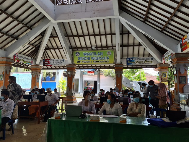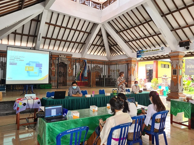 Kantor Pelayanan Penyuluhan dan Konsultasi Perpajakan (KP2KP) Ubud melakukan edukasi dan asistensi e-Filing kepada Pegawai Dinas Pendidikan Kabupaten Klungkung, di SMPN 2 Semarapura, Kabupaten Klungkung (Kamis, 4/2). Untuk mengantisipasi terjadinya kerumunan, kegiatan sosialisasi kali ini diselenggarakan selama tiga hari.