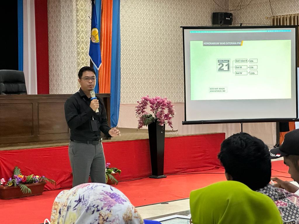Kantor Pelayanan Pajak (KPP) Pratama Bulukumba dan Kantor Pelayanan, Penyuluhan, dan Konsultasi Perpajakan (KP2KP) Benteng mengadakan sosialiasi aspek perpajakan instansi pemerintah desa di Ruang Pola Kantor Bupati Kepulauan Selayar, Kecamatan Benteng, Kabupaten Kepulauan Selayar (Kamis, 21/9). Berkoordinasi dengan Dinas Pemberdayaan Masyarakat dan Desa (DPMD) Kepulauan Selayar, sosialiasi ini dihadiri oleh perwakilan dari 83 desa di wilayah Kabupaten Kepulauan Selayar.