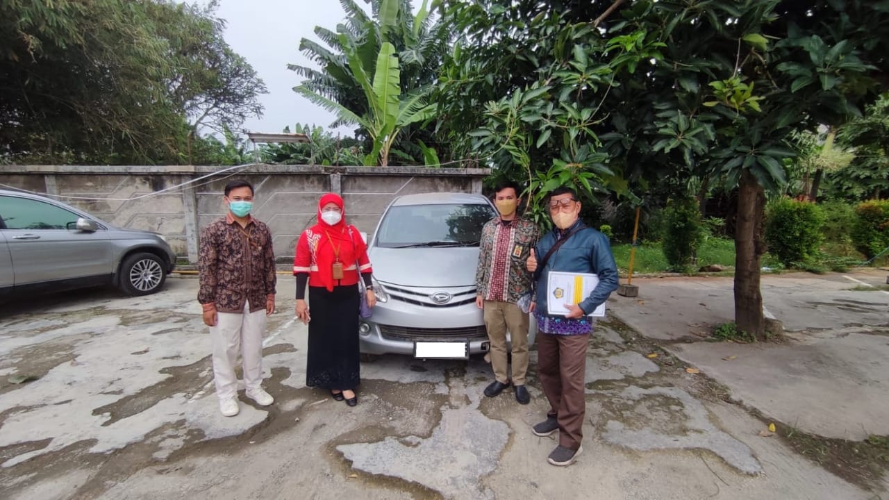 Ratna didampingi Juru Sita Pajak Negara KPP Pratama Bekasi Utara Ahmad Sai Tuasamu turut ikuti proses penyitaan. Ahmad menempelkan langsung stiker penanda penyitaan ke aset berupa mobil tersebut.