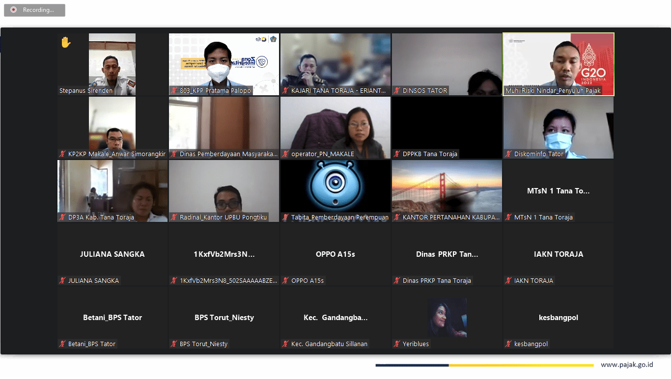 Kantor Pelayanan, Penyuluhan, dan Konsultasi Perpajakan (KP2KP) Makale menggelar Sosialisasi Undang-Undang Harmonisasi Peraturan Perpajakan (UU HPP). Acara ini diselenggarakan secara daring melalui aplikasi zoom meeting dan diikuti oleh bendahara di lingkungan Kabupaten Tana Toraja (Rabu,9/3).