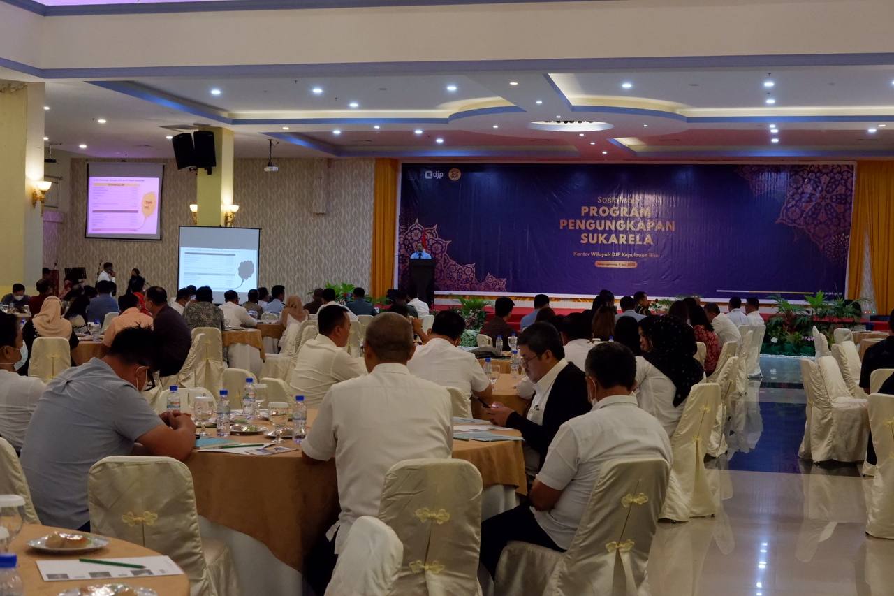 Kanwil DJP Kepulauan Riau (Kepri) menyelenggarakan acara sosialisasi Program Pengungkapan Sukarela (PPS) yang ditujukan pada sejumlah Wajib Pajak Prominen, Konsultan Pajak berserta Pejabat Forum Komunikasi Pimpinan Daerah (Forkominda) dan Pejabat Utama Propinsi Kepulauan Riau (Rabu, 8/6). Acara ini dilangsungkan di ruang Mega Ballroom Hotel CK Tanjung Pinang, Kota Tanjung Pinang.