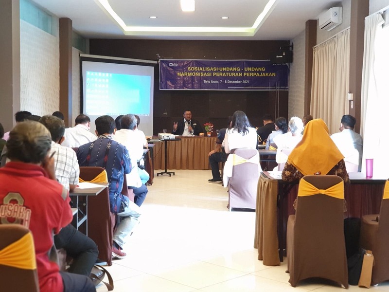 Kantor Pelayanan, Penyuluhan, dan Konsultasi Perpajakan (KP2KP) Kendal mengadakan kegiatan edukasi dengan tema Sosialisasi Undang-Undang Harmonisasi Peraturan Perpajakan (UU HPP) di ruang Cendrawasih, Tirto Arum Kendal (Selasa, 7/12).