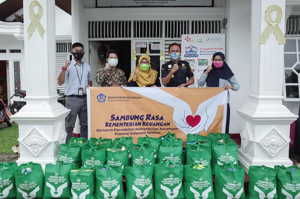 Kanwil DJP Sulawesi Selatan, Barat, dan Tenggara (Sulselbartra) bersama unit kerja Kementerian Keuangan di wilayah Kota Makassar melaksanakan kegiatan bakti sosial bertajuk ''Sambung Rasa Kemenkeu Peduli" (Selasa, 22/12). Pada kegiatan ini, tim relawan gabungan menyerahkan bantuan berupa paket sembako pada penghuni rumah singgah Yayasan Kasih Anak Kanker Indonesia (YKAKI) Makassar di Kota Makassar.