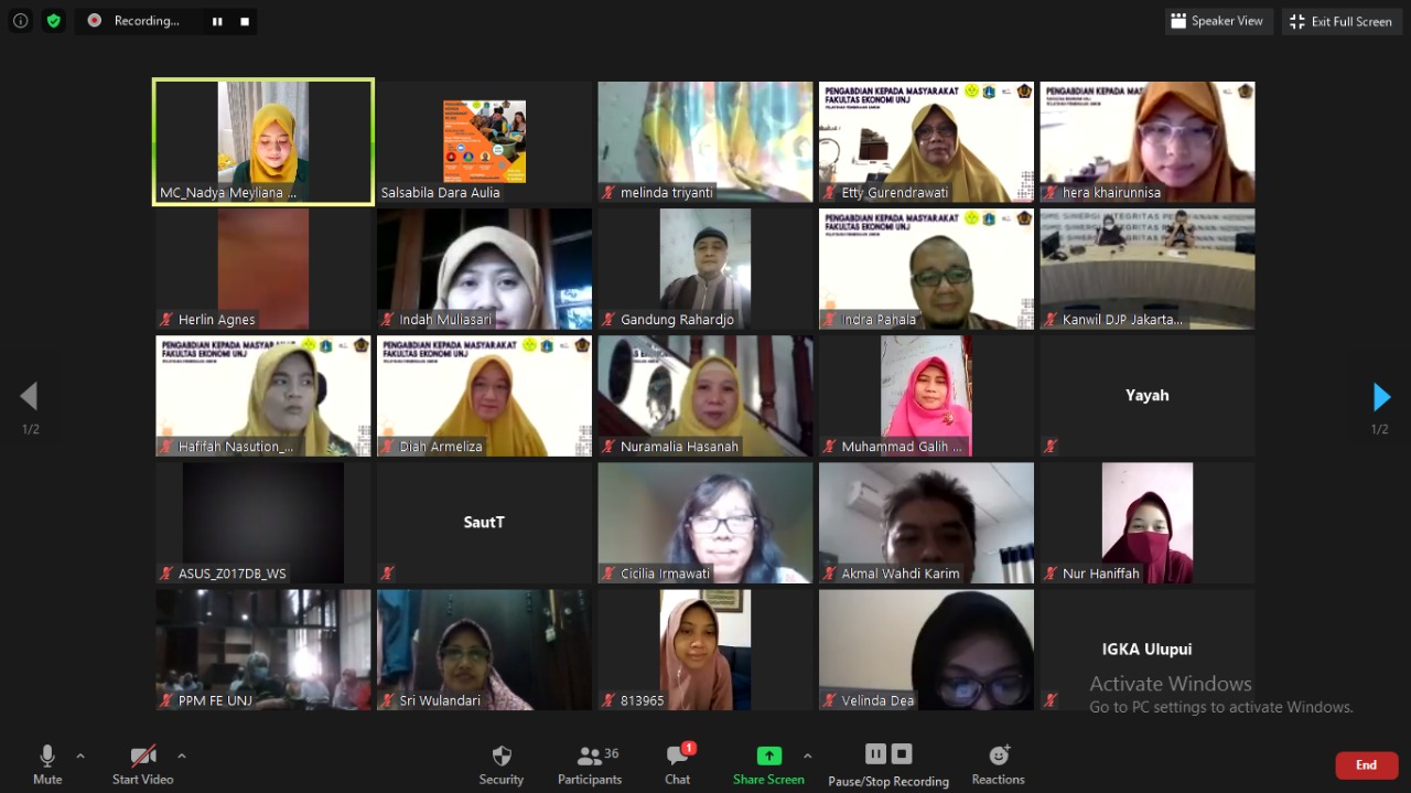 Universitas Negeri Jakarta (UNJ) bekerja sama dengan Kantor Wilayah DJP Jakarta Timur menyelenggarakan kegiatan pengabdian masyarakat berupa pelatihan dan pembinaan kepada pelaku Usaha Mikro, Kecil, dan Menengah (UMKM) melalui aplikasi Zoom di Jakarta (Selasa, 28/7).