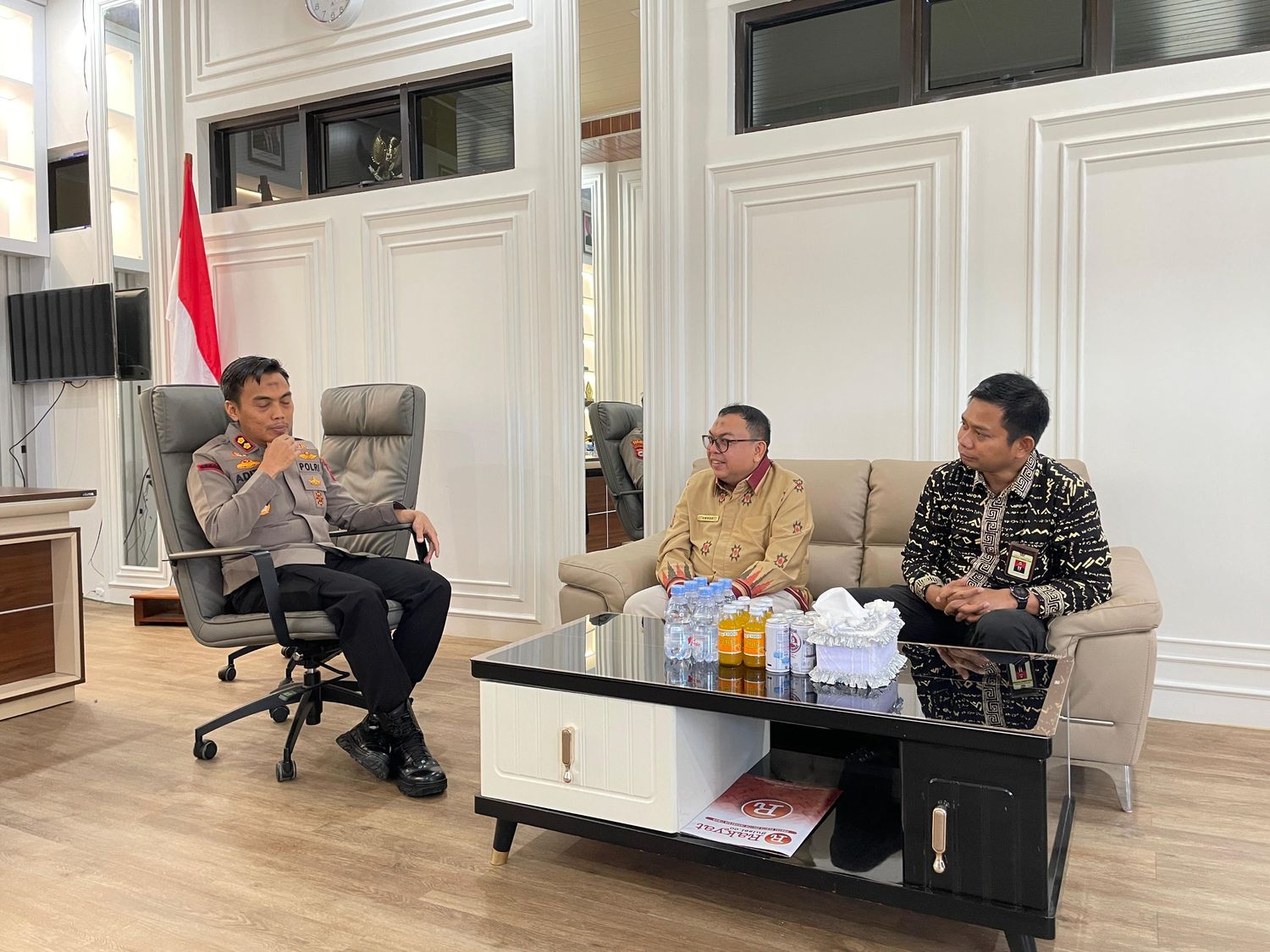 Kepala KPP Pratama Watampone, Amran, didampingi oleh Kepala KP2KP Watansoppeng, Andi Asrizal Fauzie, disambut langsung oleh Kapolres Soppeng, AKBP Aditya Pradana di Polres Soppeng.